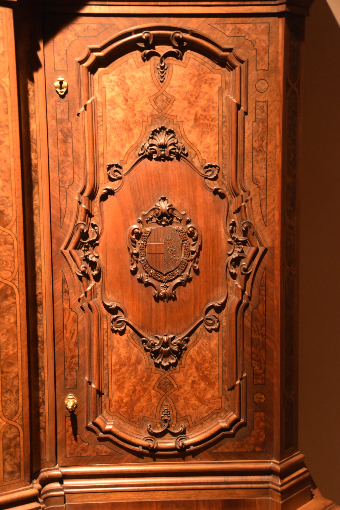 Besucht man heute die Schatzkammer, kann man den Schrank nur in geschlossenem Zustand besichtigen. Den Auftrag für dieses Objekt vergab Kaiser Franz Joseph I. an den Hoftischler Alexander Albert, im Jahr 1896. Der Meister schuf ein wunderbares intarsiertes Stück Handwerk, welches mit applizierten floralen Mustern verziert ist. Weiters schmücken, mit dem Orden vom Goldenen Vlies umrankte Wappen, die Türen des Schreins.