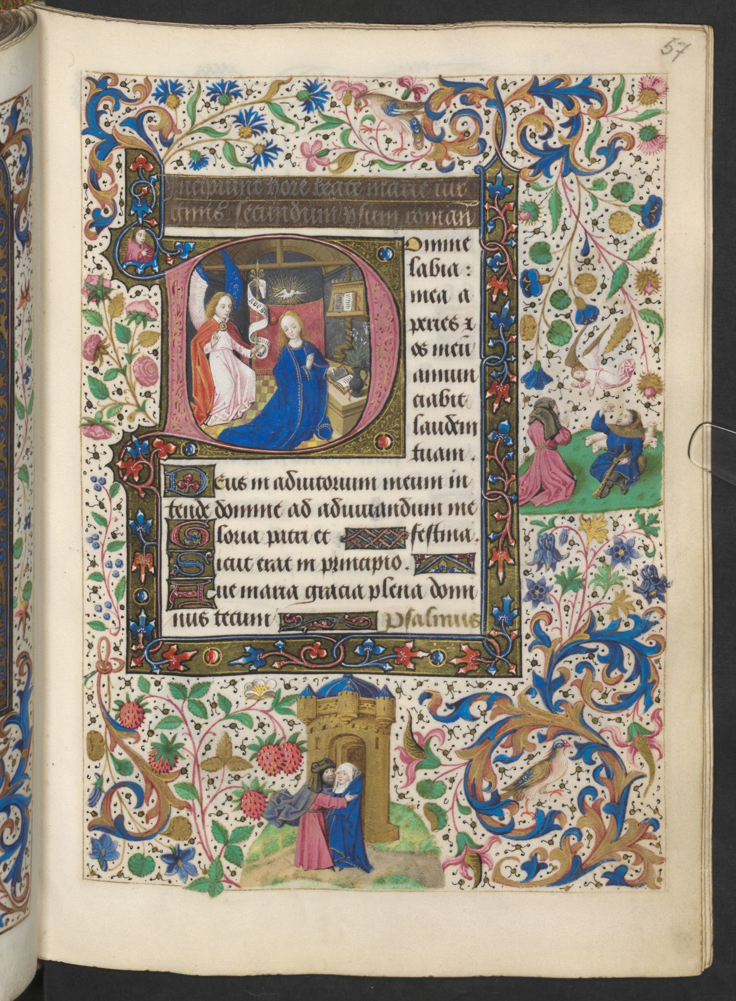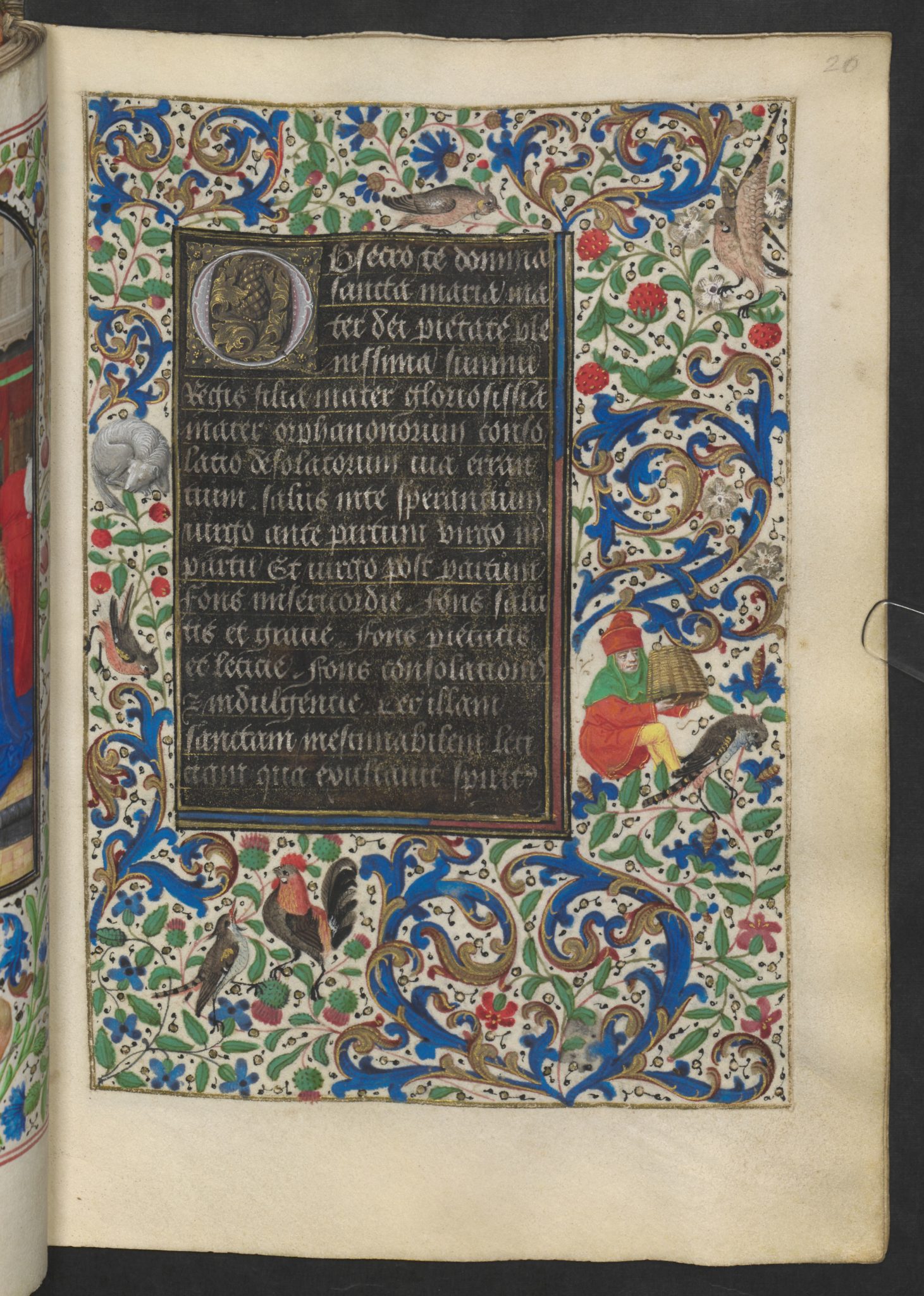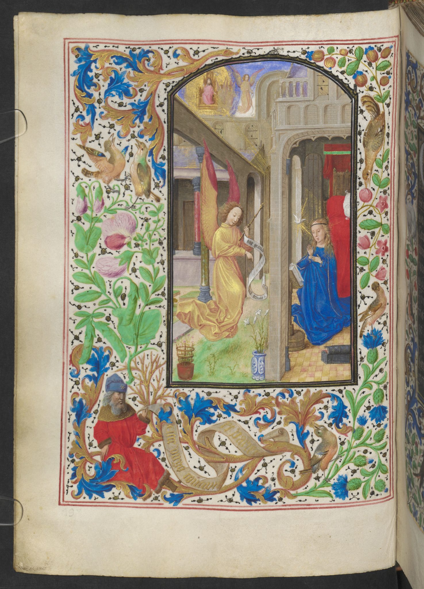 Liebe Leute, jede einzelne Seite dieses Bandes ist ein Meisterwerk, ganz gleich ob es sich um die 20 ganzseitigen Miniaturen oder die 32 kleinen Illustrationen handelt. Jedes die Gebete umfassende Feld, die Bordüre, ist mit handgemalten Blumen und Tieren übersät.