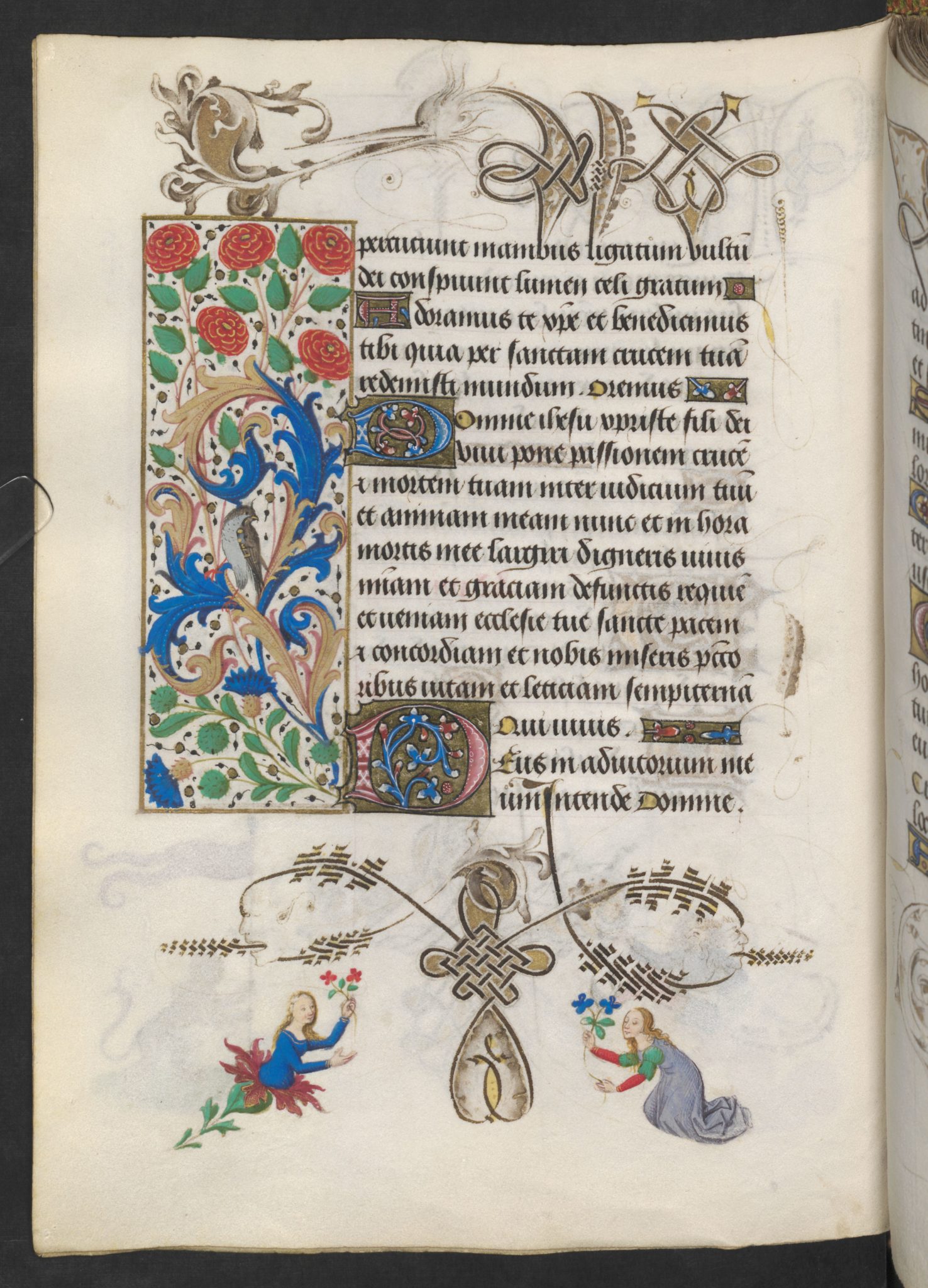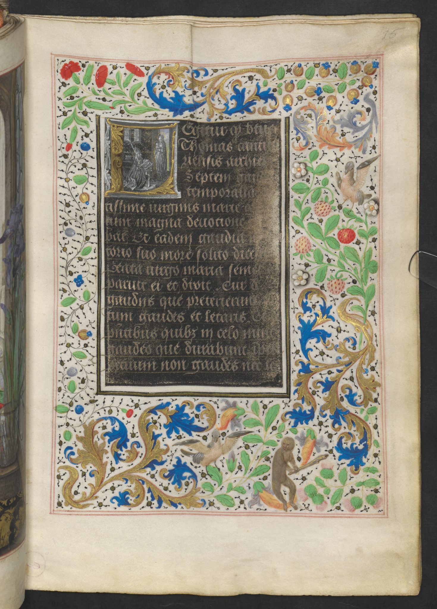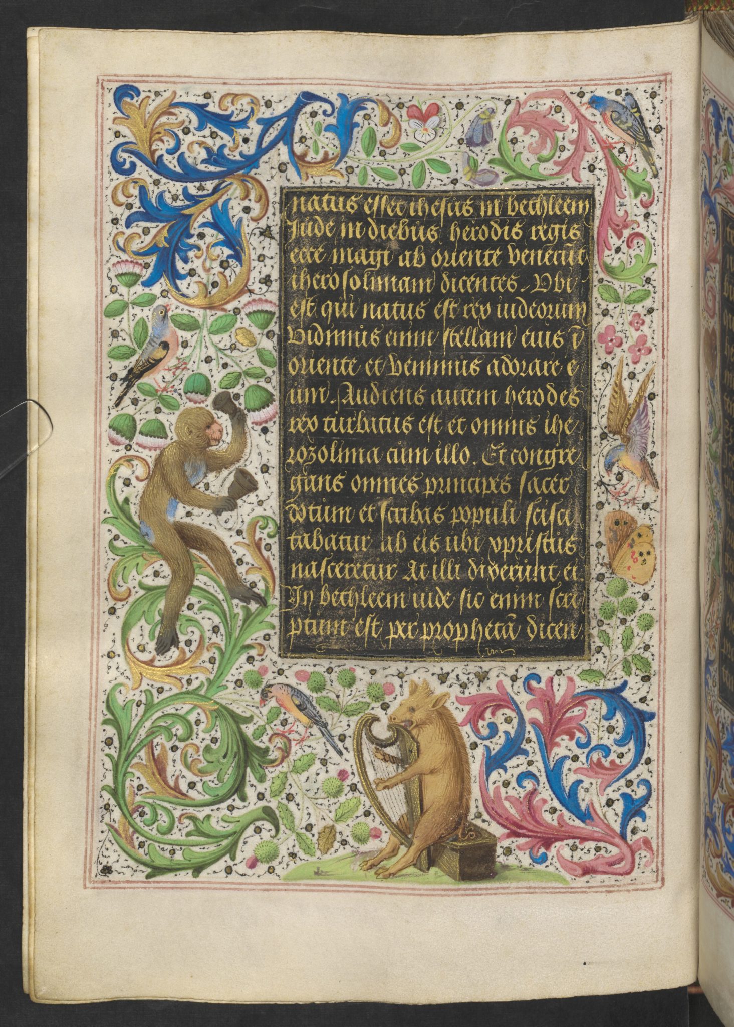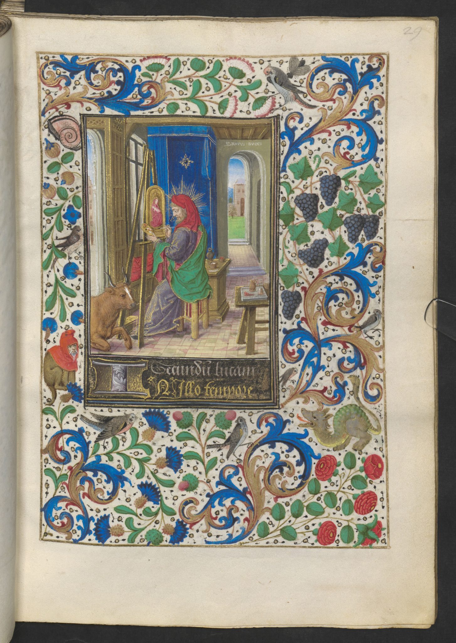 Liebe Leute, jede einzelne Seite dieses Bandes ist ein Meisterwerk, ganz gleich ob es sich um die 20 ganzseitigen Miniaturen oder die 32 kleinen Illustrationen handelt. Jedes die Gebete umfassende Feld, die Bordüre, ist mit handgemalten Blumen und Tieren übersät.