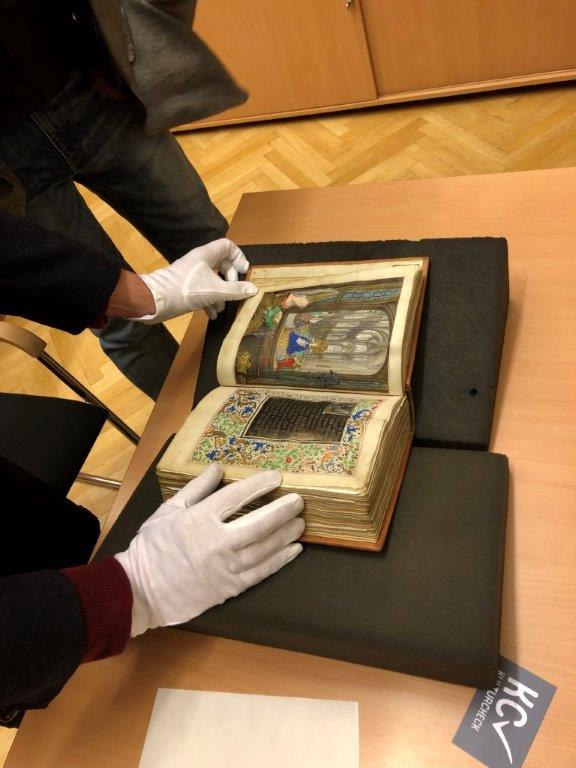 Genau bei unserem heutigen Thema – dem Stundenbuch der Maria von Burgund – traf das wieder zu, und da geschah ein Glücksfall. Mir wurde von der Österreichischen Nationalbibliothek (ÖNB) ein Fachgespräch mit einer Kapazität des Hauses angeboten, worauf ich freudig zugriff.