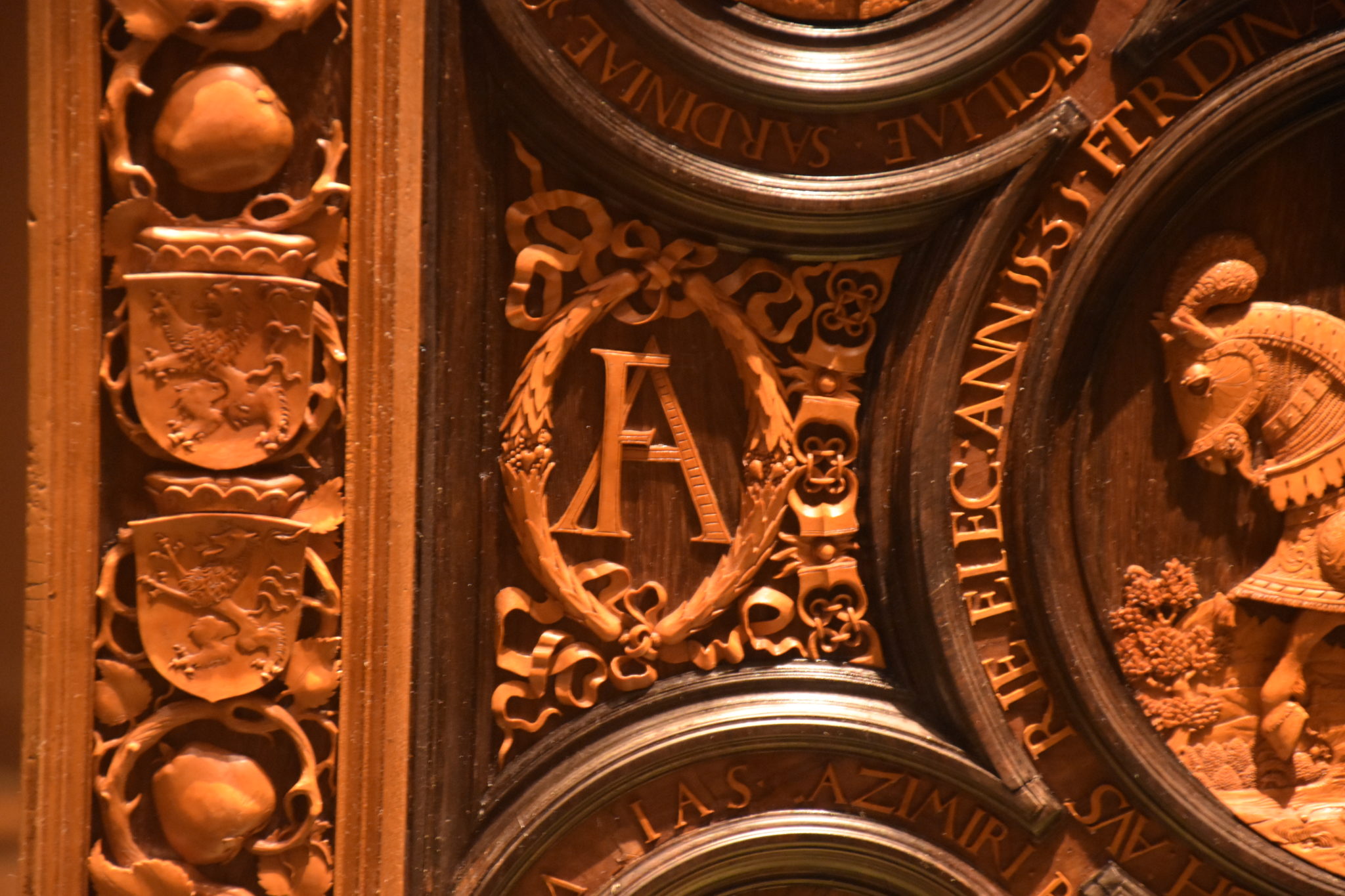 Das F der Initialen bezieht sich auf ihn selbst und das A auf seine Gattin Anna. Umschlossen ist sein Abbild mit dem „Orden vom goldenen Vlies“, dem prominenten Hausorden der Habsburger.