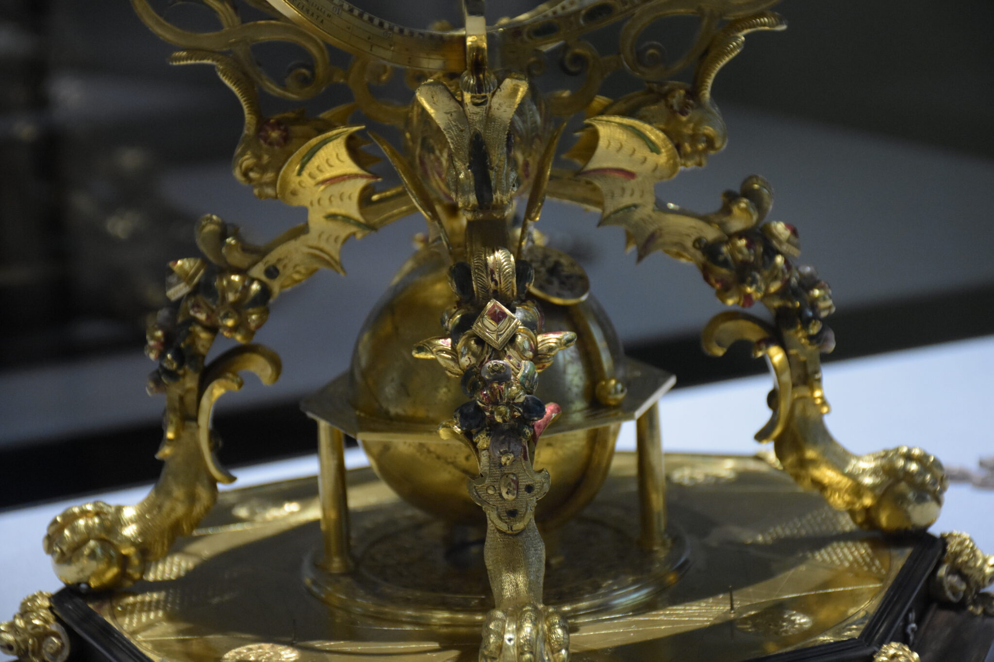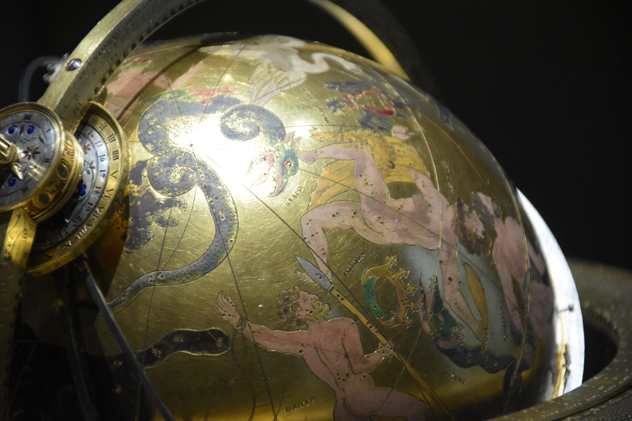 Es rankt sich auch noch eine Historie um dieses Kleinod der Mechanik: Geschaffen wurde es in einer Zusammenarbeit der beiden Uhrmacher Georg Roll (1546-1592) und Johann Reinhold (1550-1596). Roll, der als Unternehmer und Geschäftsmann des Duos galt, verkaufte den Globus 1584 an Kaiser Rudolf II., jedoch ein zweites Exemplar an den Bruder des Kaisers, Erzherzog Ernst (1553-1595). Diese zweite Himmelskugel war jedoch um 300 Thaler teurer als die des Kaisers. Rudolf, in der Meinung, er habe das schlechtere Exemplar bekommen, war darüber derart empört, dass er Roll vom Augsburger Stadtrat ins Gefängnis werfen ließ.