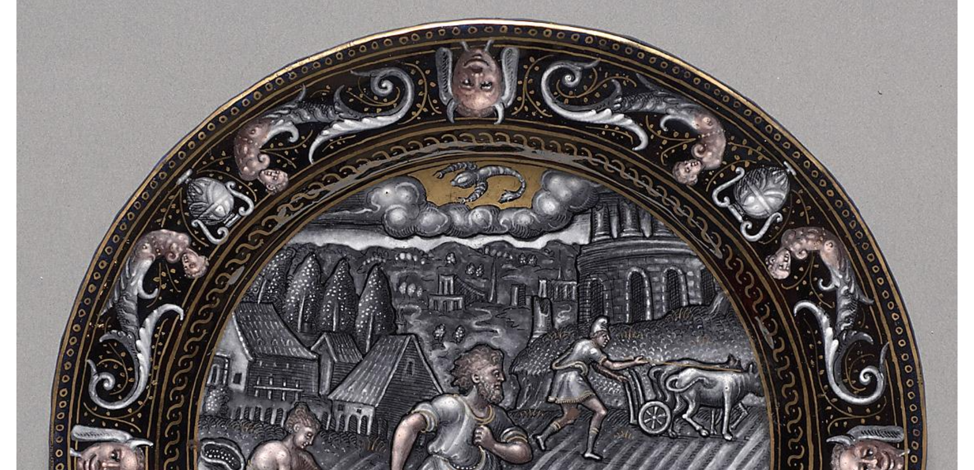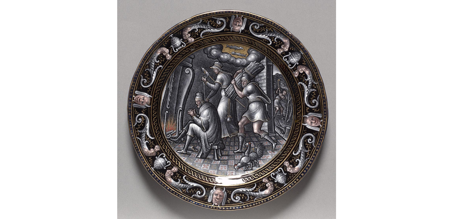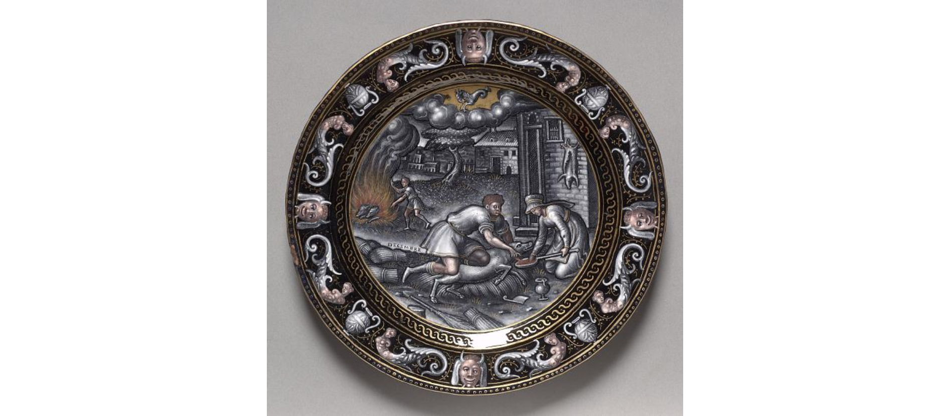 Gefertigt wurden die Teller in der 2. Hälfte des 16. Jahrhunderts im französischen Limoges. Diese Stadt war zu dieser Zeit ein europäisches Zentrum für exklusiven Tafelschmuck in der Technik des Maleremails. Die Könnerschaft in dieser Fertigkeit, aber auch das ab dem 18. Jahrhundert erzeugte Porzellan, machten diese Kunstfertigkeit zu einem, bis heute, dominierenden Wirtschaftszweig Limoges.