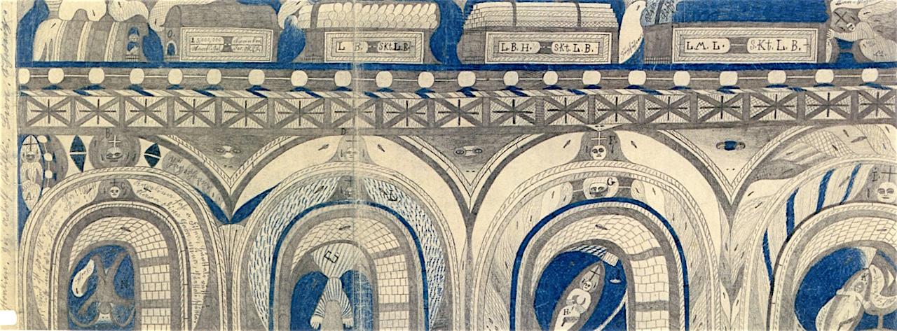 Die Geschichte betitelt er „Von der Wiege bis zum Grab, oder, durch arbeiten und schwitzen, leiden, und Drangsal bettend zum Fluch“. Auf 3000 beschriebenen und illustrierten Seiten erzählt er eine fiktive Reise mit seiner Familie um die Welt. Er arbeitete wie ein Besessener, was er wahrscheinlich auch war, denn er benötigte nur 4 Jahre dafür. Das ist nicht wirklich lange, denn wenn er jeden Tag gearbeitet hat, musste er täglich zwei Blätter bis zum Rand füllen. Er selbst stellt sich immer, in seinen Abenteuern als das Kind „Doufi“ dar, andere Figuren tragen konsequent immer ein Kreuz am Kopf, was auf die spätere Heiligsprechung seiner eigenen Person und die seiner Familie durch ihn selbst hinweist.