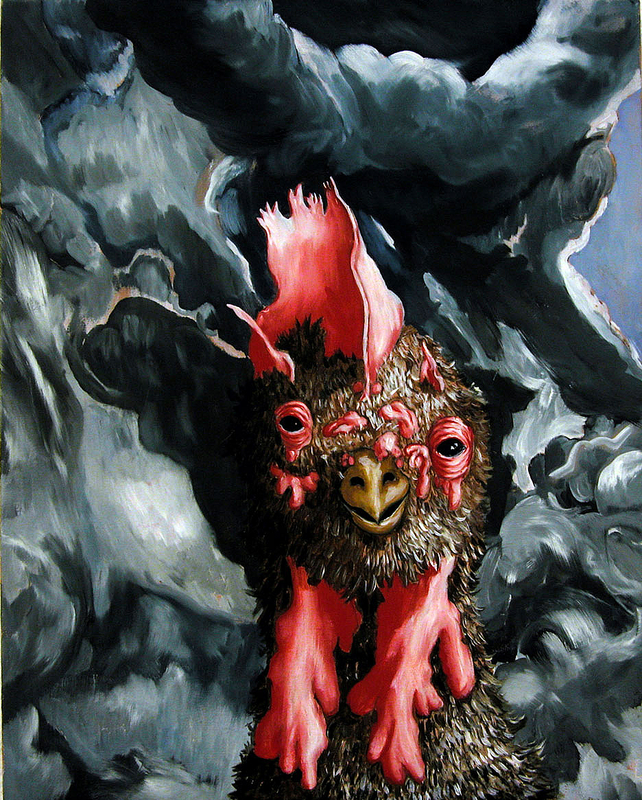 Mitte dieses Jahrzehnts beginnt sich auch die Literatur in seinen Bildern zu manifestieren und seine „Chicken – Pictures“ aus dieser Zeit gehen auf eine Kurzgeschichte Franz Kafkas zurück, in welcher ein Hund darüber nachdenkt, woher die Welt ihr Essen bekommt.
