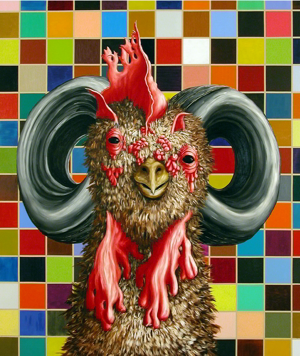Anfang des Millenniums bekommen die Protagonisten seiner Hühner-Bilder Einzelporträts und Auto – Reifen erscheinen in seiner Bilderwelt.