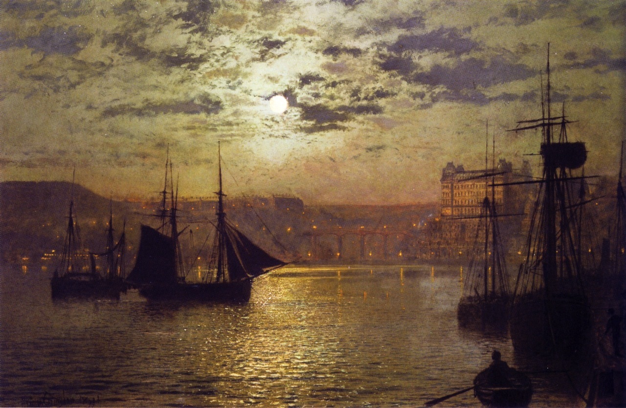 Ebenfalls eine besonders anziehende Wirkung auf Grimshaw hatten Häfen und Docks. Englische Hafenstädte wie etwa Whitby oder Scarborough übten eine magische Faszination auf ihn aus. Er malte sie etliche Male und er mietete in Scarborough, in den 70er-Jahren des 19. Jahrhunderts, für sich und seine Familie für längere Zeit ein zweites Zuhause.