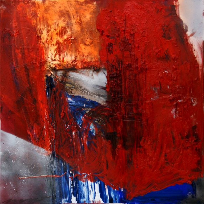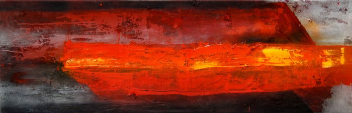 Wie der Schmied zwingt sie das glühende rote Chaos in eine gereinigte, geordnete Form. Konzentriert vor einem ihrer Bild stehend vermeint man die ausstrahlende Hitze des Metalls zu spüren, kann jedoch die aufkeimende Angst bezwingen, da sich an den Rändern schon Asche bildet. Die Gewalt der Elemente führt nicht nur zurück in ihre Kindheit sondern auch in die unserer Erde, zur Entstehung alles Seins.