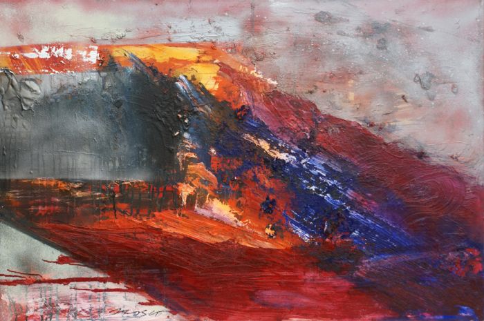 Maria Moser als abstrakte Malerin zu bezeichnen, hält eigentlich nur so lange bis man die Geschichte hinter ihrer Bilder kennt, denn dann werden sie sehr gegenständlich – Eisen, Feuer, Glut, Asche, Rost, Umformung der Materie.