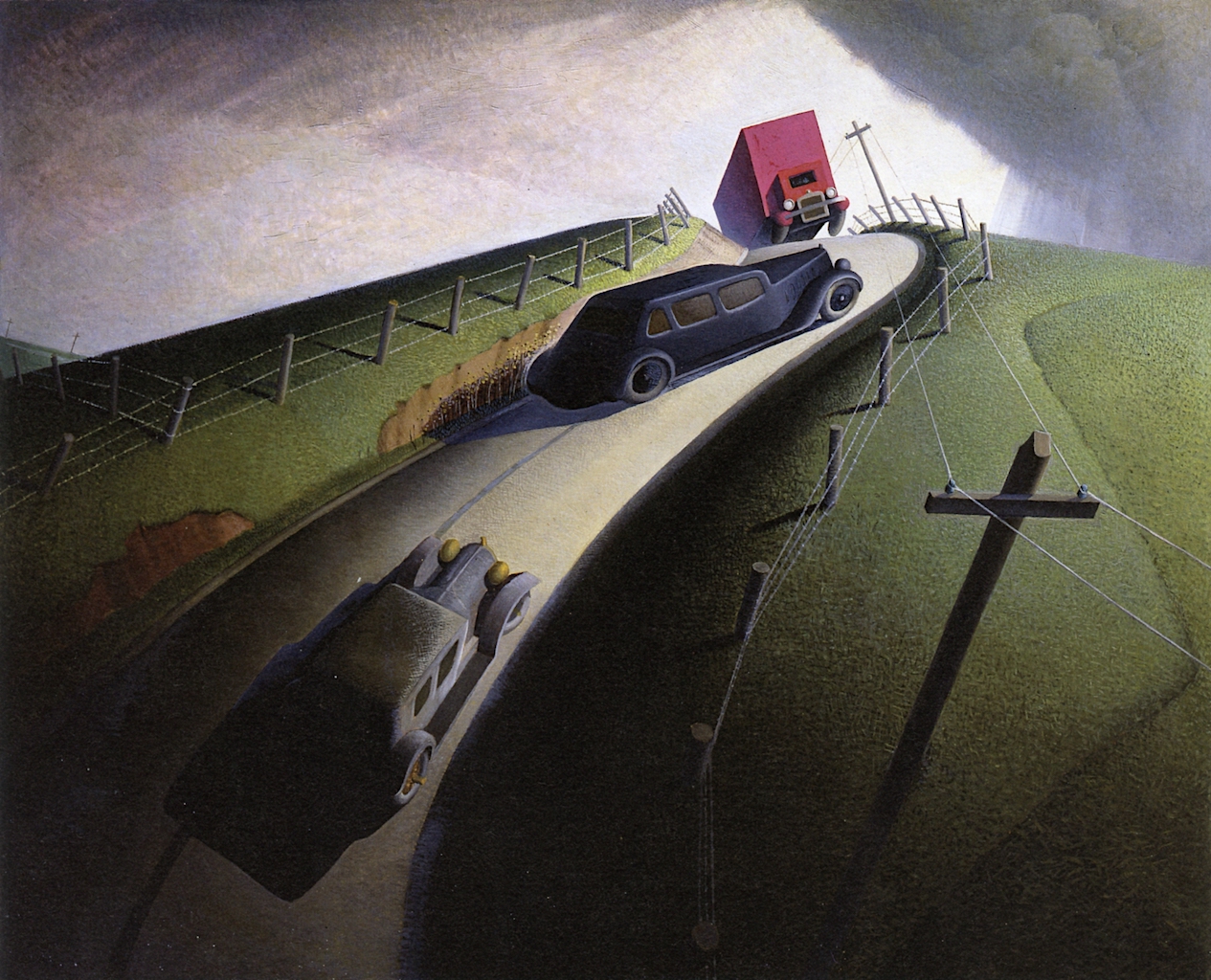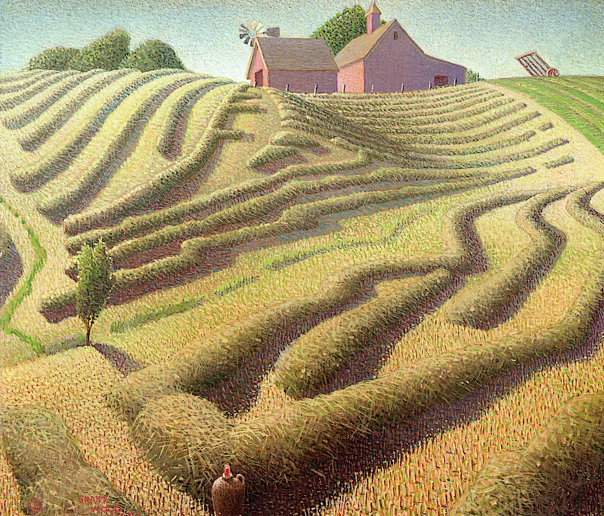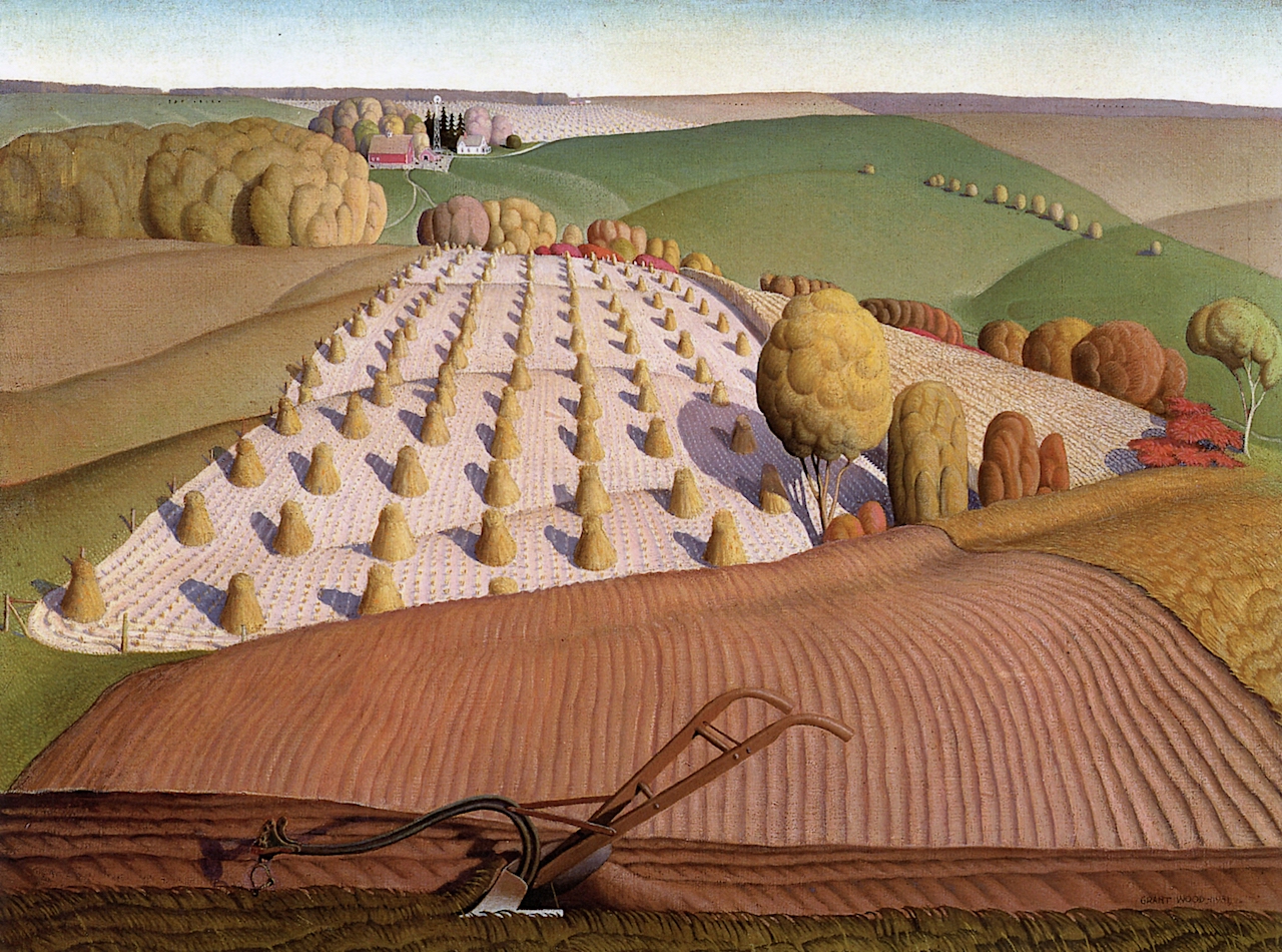 Ab 1934 war Grant Wood Dozent an der „School of Art“ der Universität von Iowa und die Landschaftsmalerei wurde für ihn ein einträglicher Erwerbszweig. Er war zu dieser Zeit nur mehr an seinem eigenen Stil interessiert und das frühere impressionistische Licht- und Schattenspiel wurde nebensächlich.