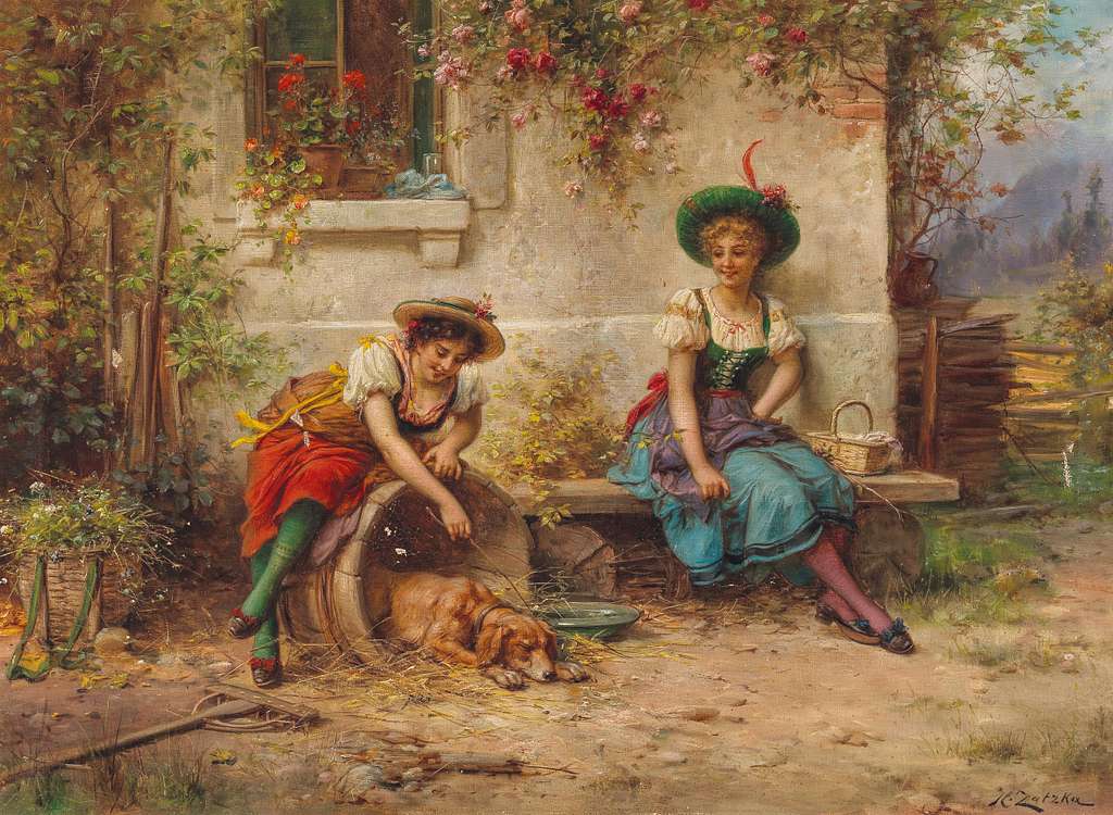 Gibt es eine Linie zwischen Kunst und Kitsch? Um der Antwort zu dieser Frage näher zu kommen, begegnen wir heute dem Werk des österreichischen Malers Hans Zatzka (1859-1945). Zatzka studierte von 1877-1882 an der Akademie der bildenden Künste in Wien unter Christian Griepenkerl, Carl Wurzinger und Carl von Blaas und wurde bereits 1880 mit der Fügermedaille in Gold ausgezeichnet. Diese Auszeichnung wurde jährlich von der Akademie für die besten graphischen Arbeiten vergeben.