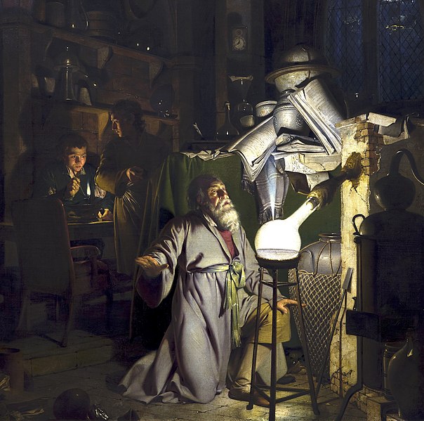 - Henning Brandt bei der Entdeckung des Phosphor 1771, Joseph Wright of Derby, Foto: © Leyo in wikimedia com.