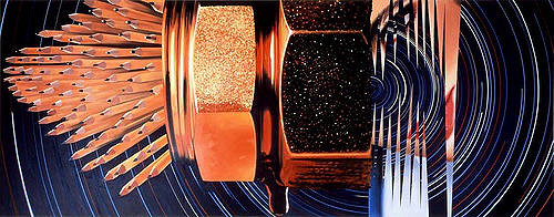 Er stellte dort sein Bild „F 111“ aus, und das Besondere daran – es war das einzige Bild der Ausstellung , hatte jedoch eine Größe von 3 Meter Höhe und 26 Meter Länge, bestand aus 23 Einzel – Paneelen und füllte alle 4 Wände des Ausstellungsraums. Nur die Eingangstür blieb frei, und James hatte es extra für diesen Event geschaffen. Diese Idee und deren Umsetzung bescherte ihm jetzt internationale Aufmerksamkeit und Anerkennung.