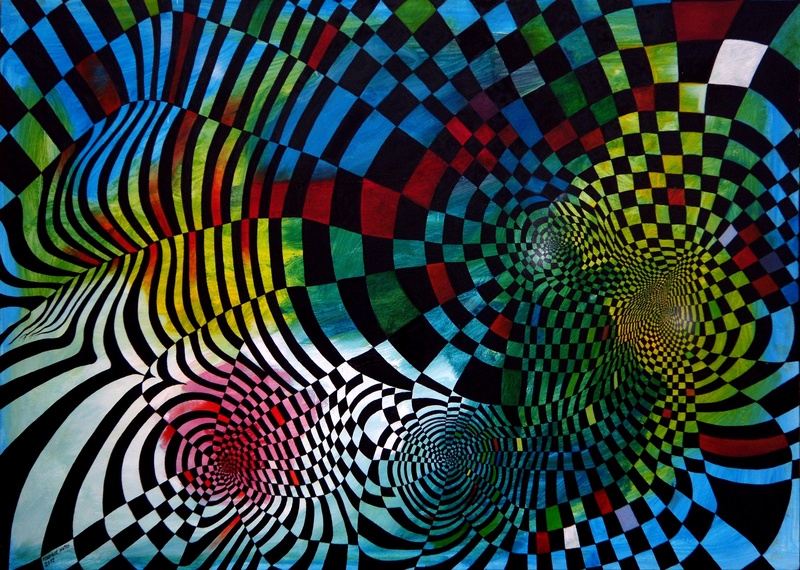 Liebe Leute, der heutige Beitrag über Malerei, könnte bei manchen Personen Schwindelgefühle auslösen, denn wir begeben uns auf ein künstlerisches Terrain der 60er-Jahre, das es in sich hat: Op-Art!