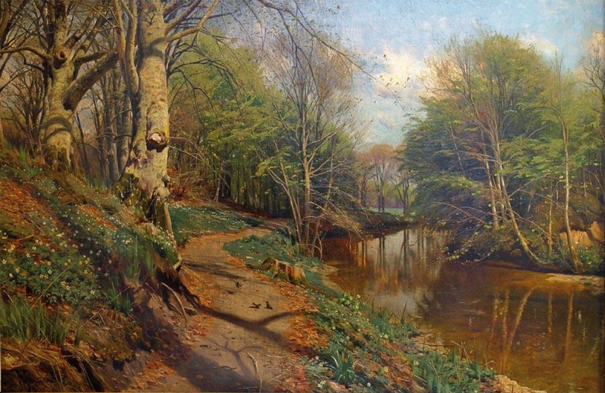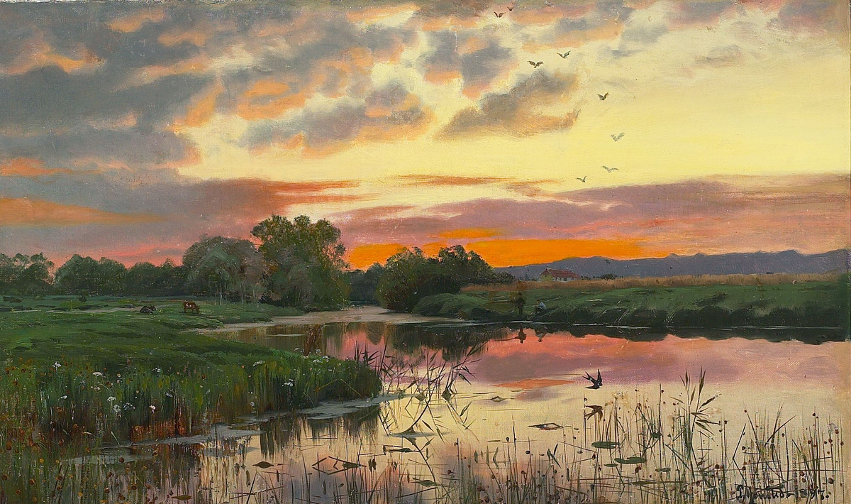 Maler bewahrten uns das Aussehen vorangegangener Generationen, die Entwicklung von Städten und die Ursprünglichkeit von Landschaften. Der Pinsel des Künstlers hatte bis 1837 diese bedeutende Aufgabe, die danach kontinuierlich der Auslöser des Fotoapparats übernahm. Und so ein malender Chronist, der vorwiegend die Schönheit der skandinavischen Landschaft festhielt war: Peder Mork Monsted (1859-1941)