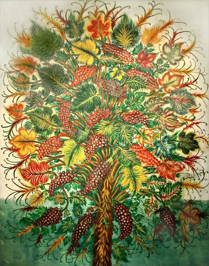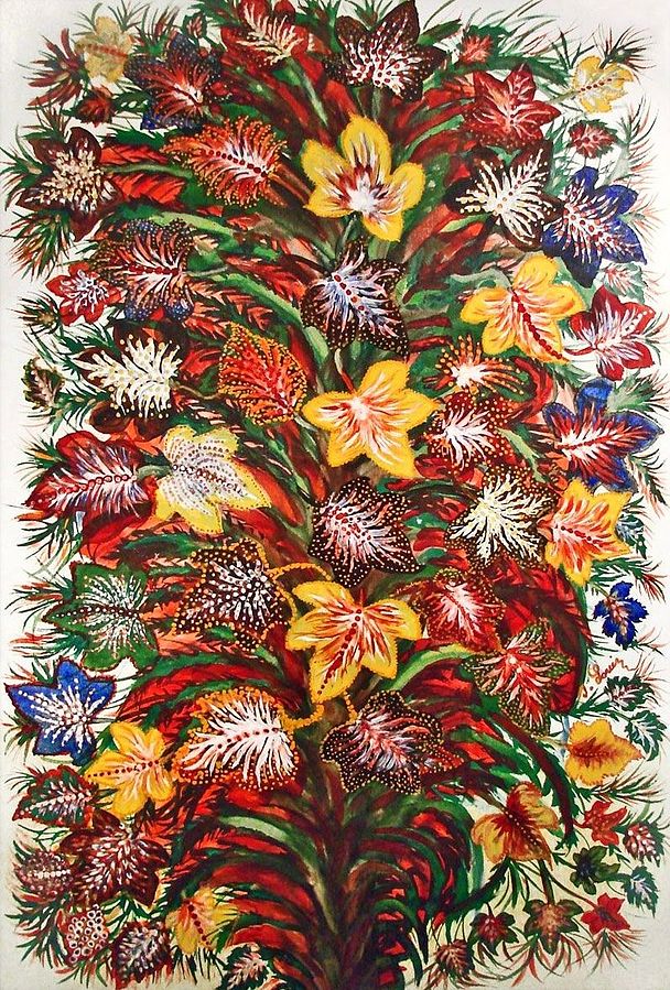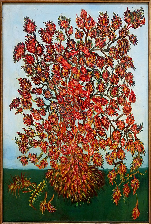 Séraphine Louis (1864-1942) war eine einfache Frau, die in Senlis in mehreren Haushalten als Hilfe arbeitete. Als tiefreligiöser Mensch erhielt sie, nach eigenen Angaben, über einen Engel, von der Gottesmutter Maria den Auftrag zu malen, welchen sie getreulich und mit Leidenschaft ausführte. Auf Grund ihrer ärmlichen Verhältnisse, stellte sie ihre Farben aus allen ihr zugänglichen natürlichen und chemischen Stoffen selbst her, und malte durchgehend nur florale Motive. Ihren Prozess des Malens begleitete sie mit frommen, religiösen Gesängen, wollte jedoch keine Beobachter dabei dulden.