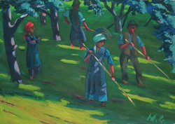 Die Arbeiten Werner Bergs behandeln fast ausschließlich das bäuerliche Leben und die Landschaft des Kärntner Unterlands. Großflächig gemalte Figuren bevölkern diese Welt, jedoch gerade diese Einfachheit gepaart mit leuchtender Farbigkeit erschaffen deren Schönheit und Mystik. Ich selbst kann mich nur schwer dem Bann dieser archaischen, ruhigen Darstellungsweise entziehen.