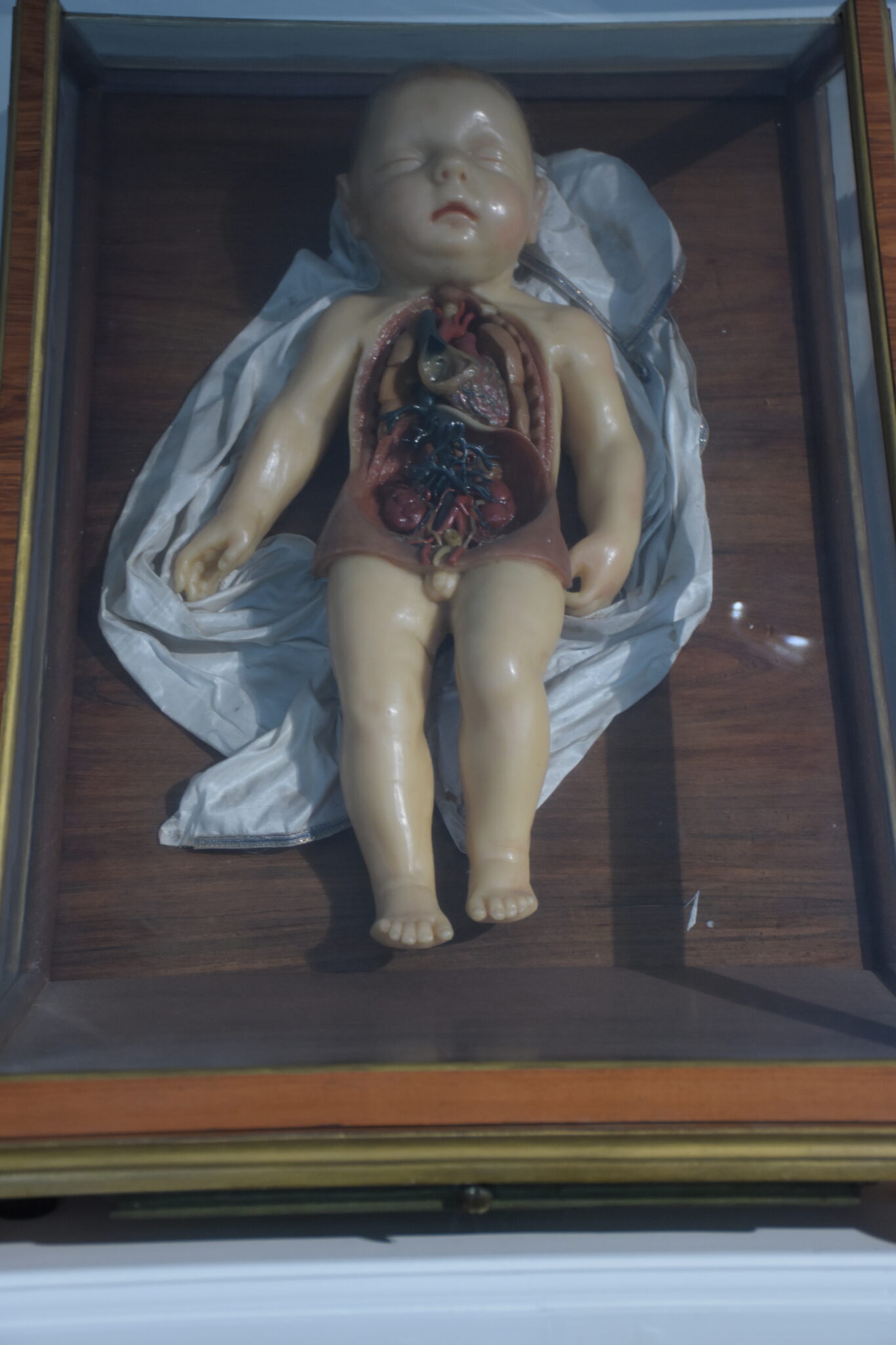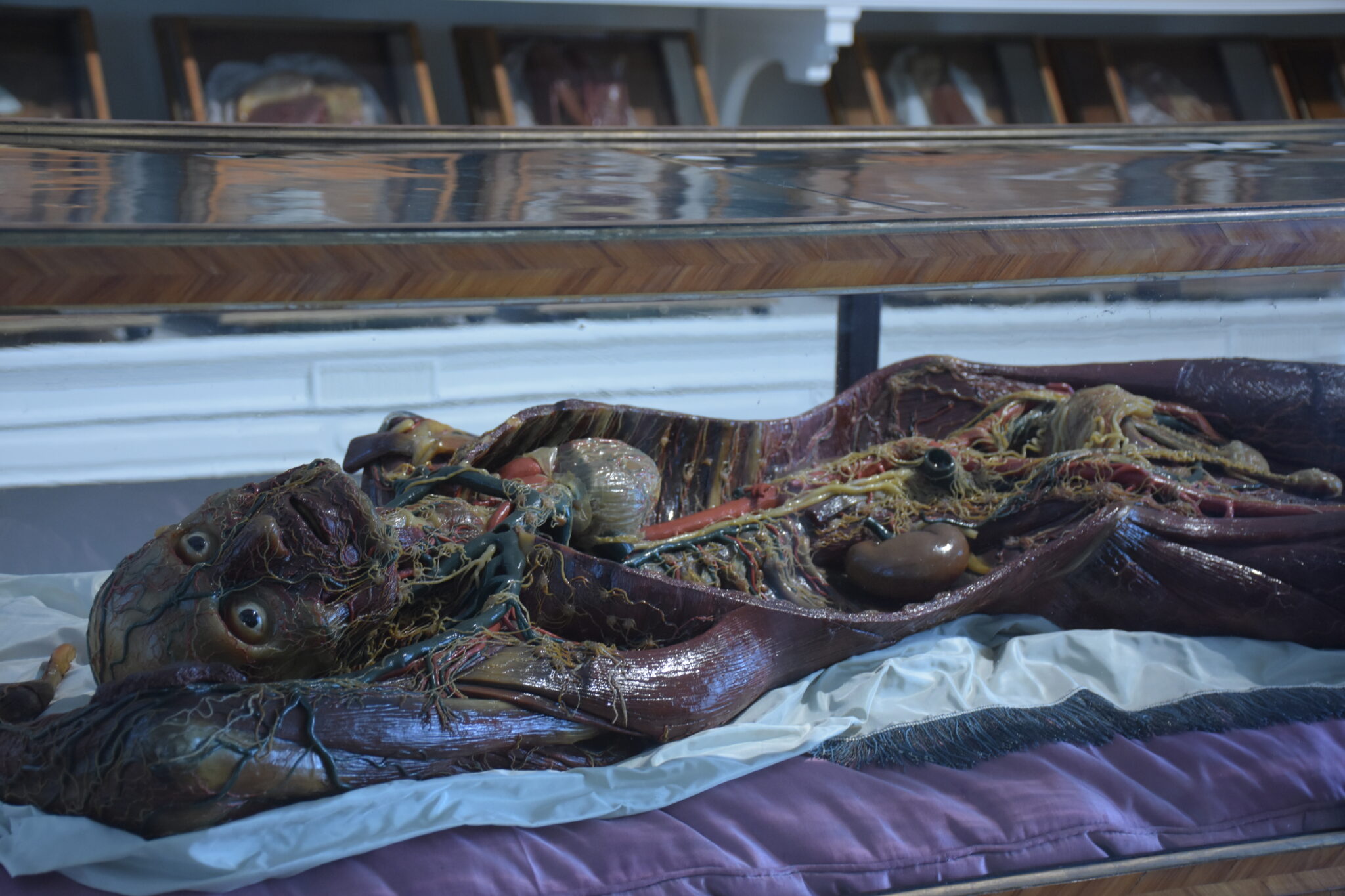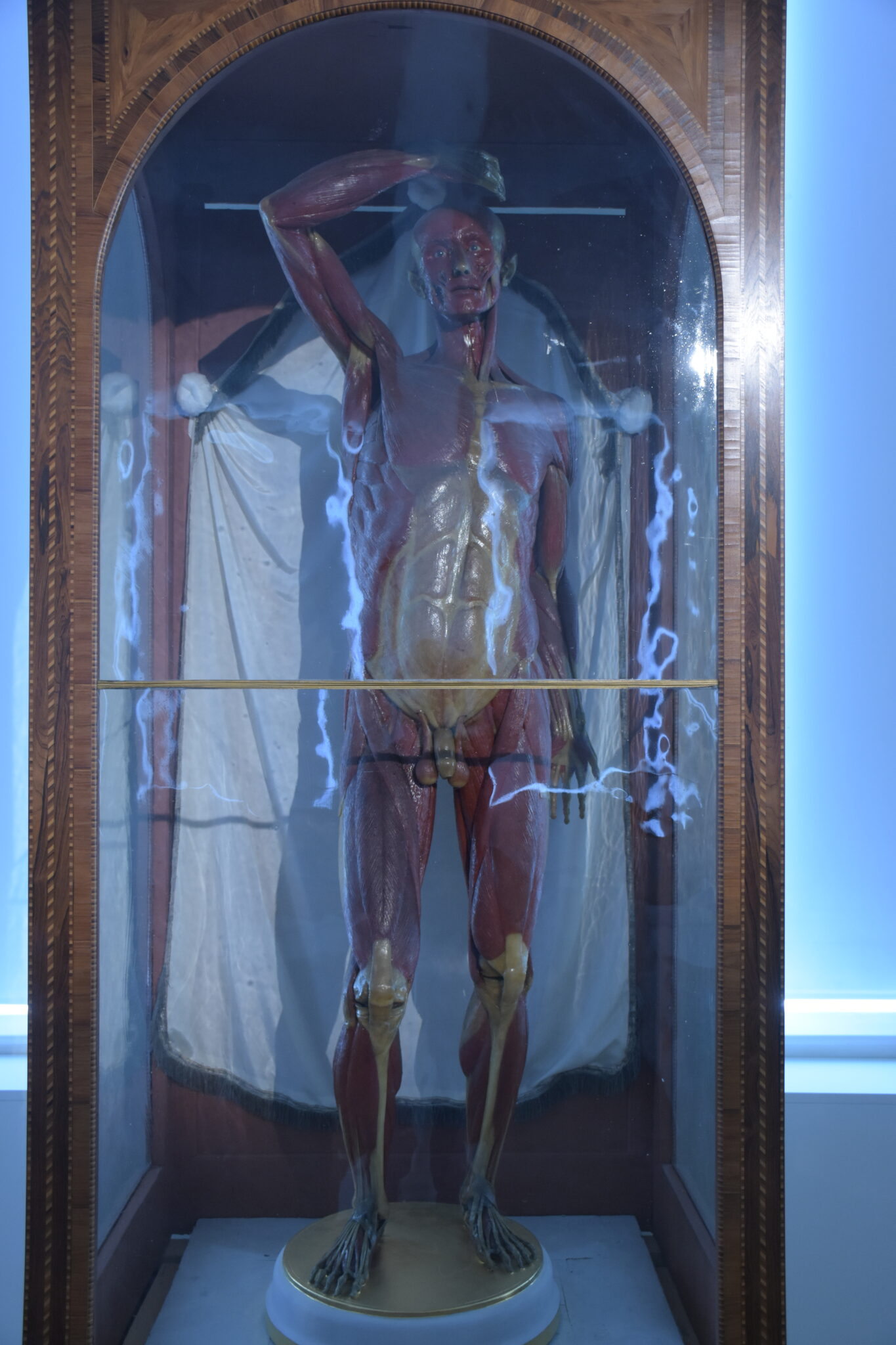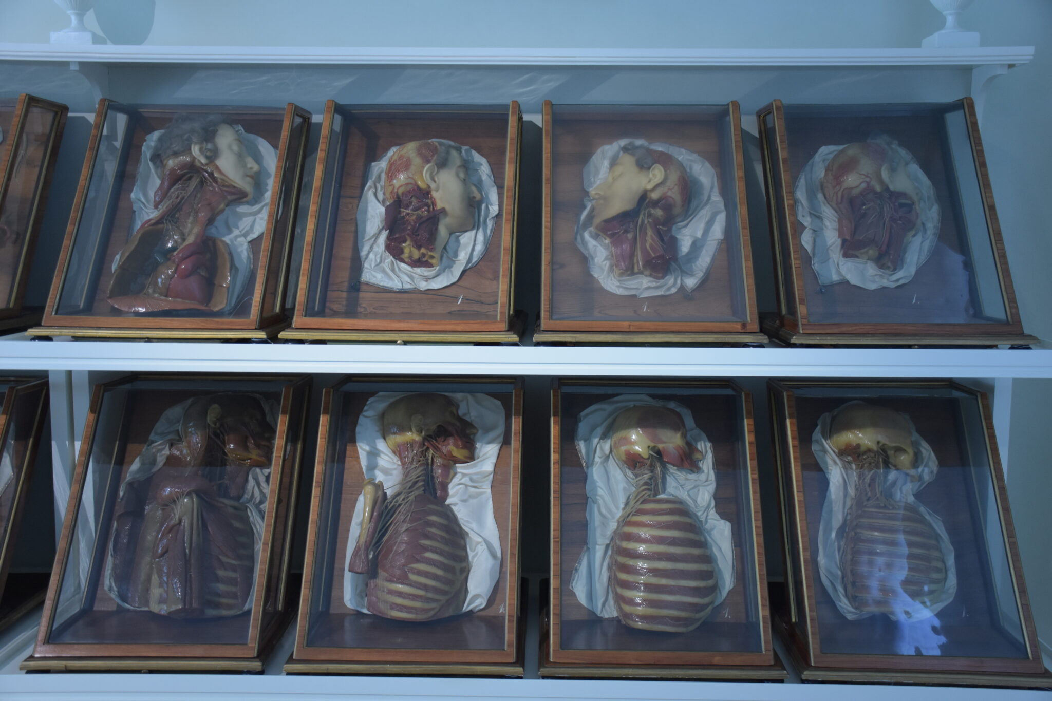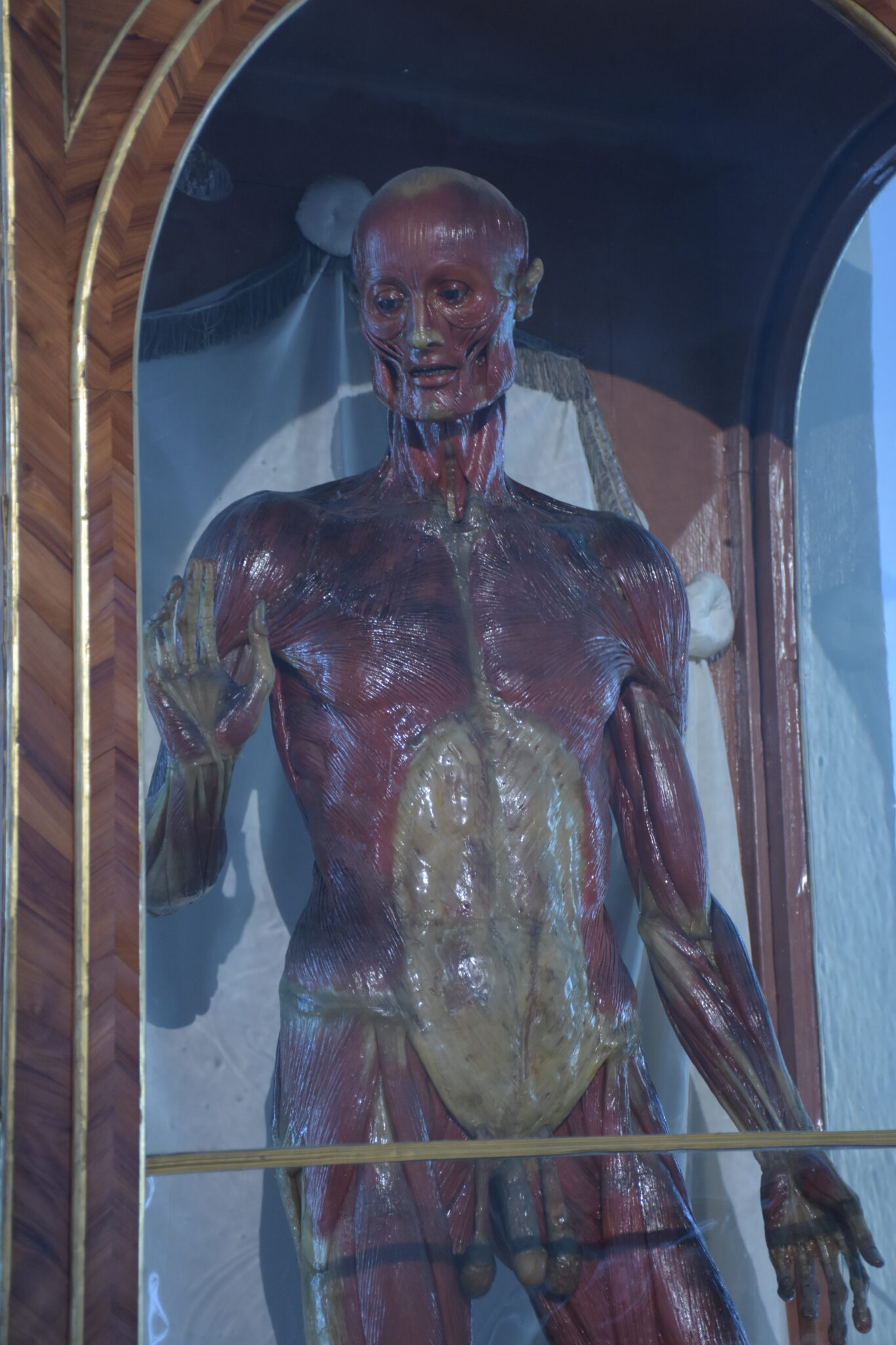 Die Hersteller hatten wunderbare Arbeit verrichtet, denn die Modelle zeigten in beeindruckend realistischer Weise das anatomische Innenleben von uns Menschen in vielen Aspekten. Jedoch auch künstlerische Facetten fanden Beachtung, und die Posen der Ganzkörperfiguren, wurden nach Skizzen Michelangelos gestaltet. Zur Präsentation wählte man Vitrinen aus Rosenholz mit mundgeblasenen, venezianischen Glaswänden.