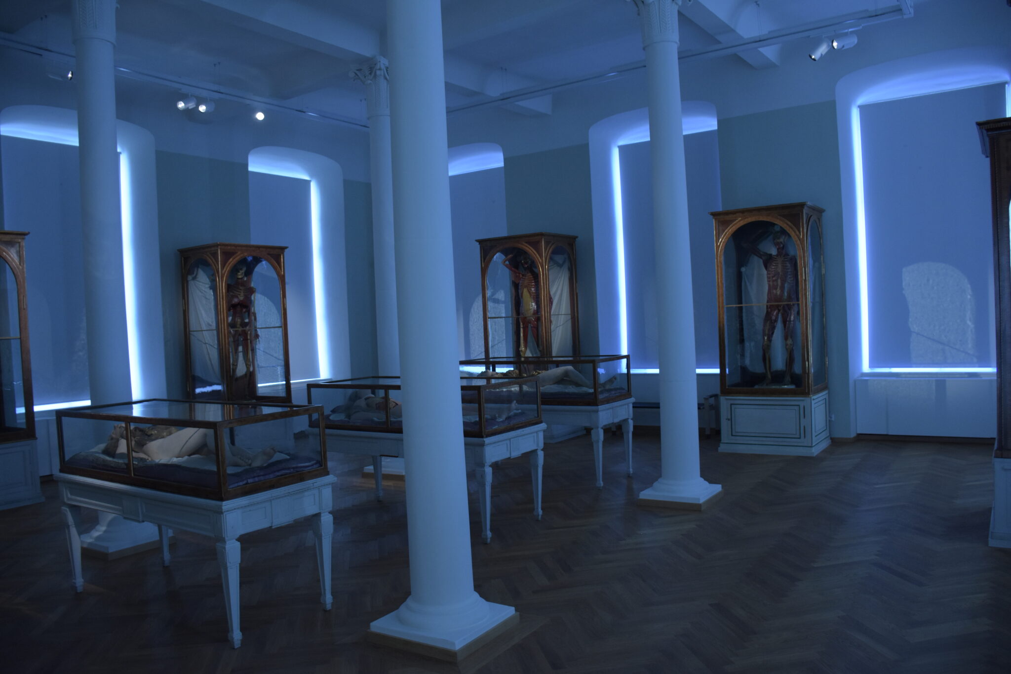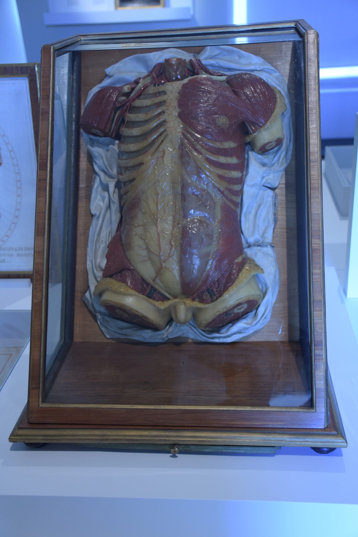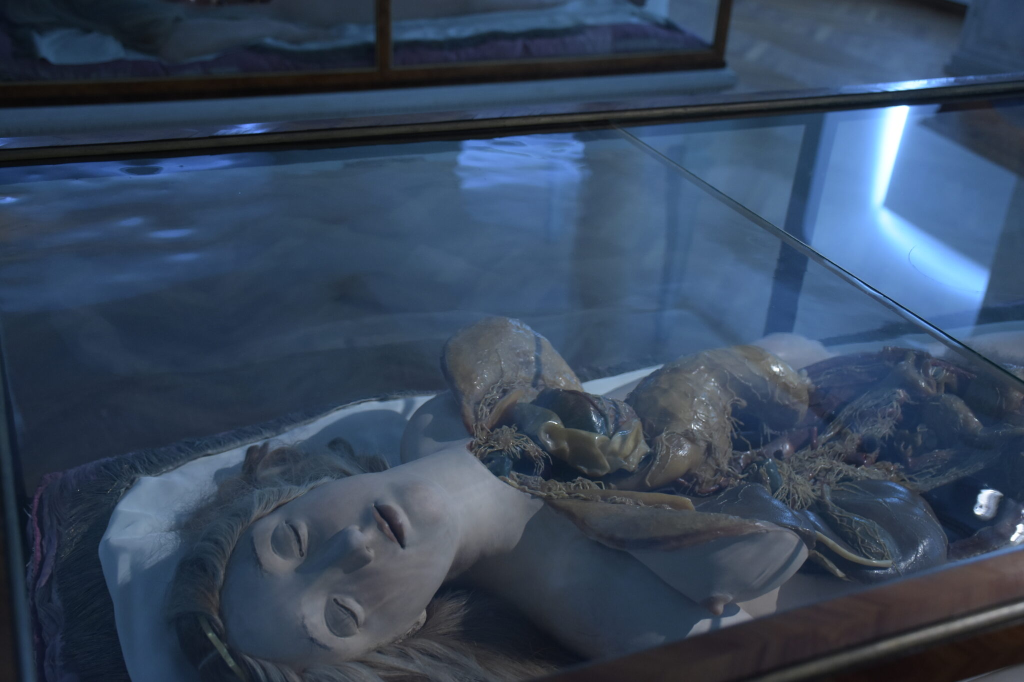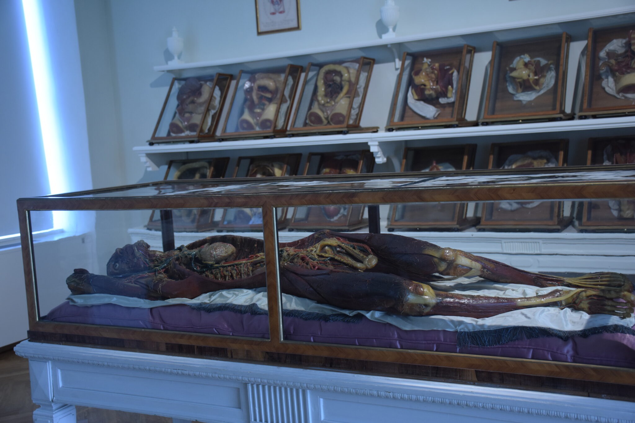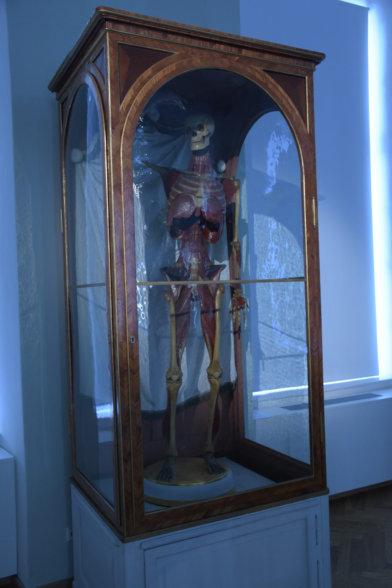 Die Hersteller hatten wunderbare Arbeit verrichtet, denn die Modelle zeigten in beeindruckend realistischer Weise das anatomische Innenleben von uns Menschen in vielen Aspekten. Jedoch auch künstlerische Facetten fanden Beachtung, und die Posen der Ganzkörperfiguren, wurden nach Skizzen Michelangelos gestaltet. Zur Präsentation wählte man Vitrinen aus Rosenholz mit mundgeblasenen, venezianischen Glaswänden.