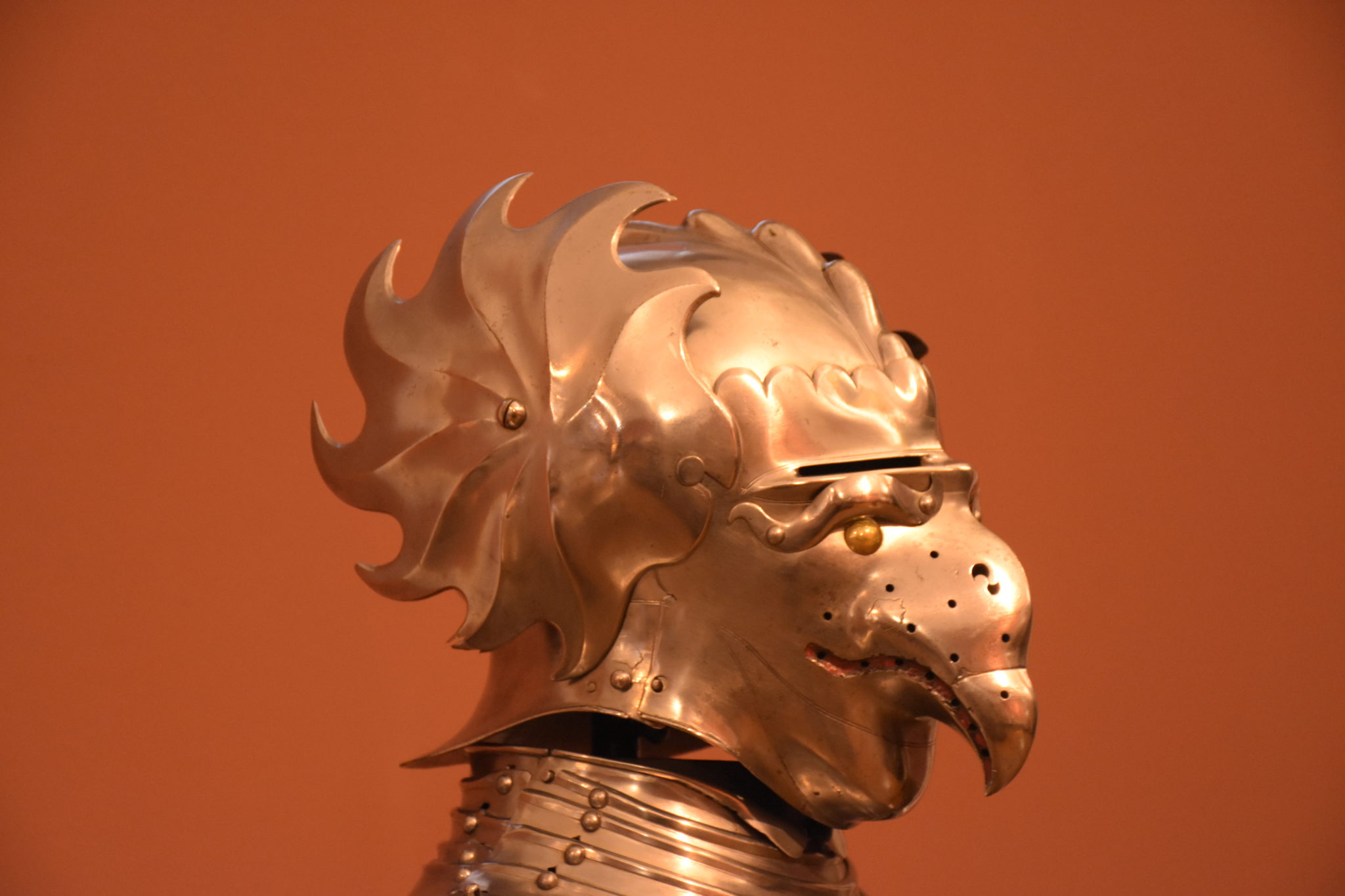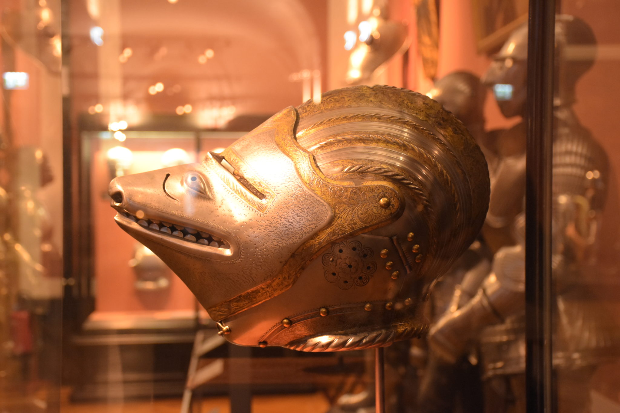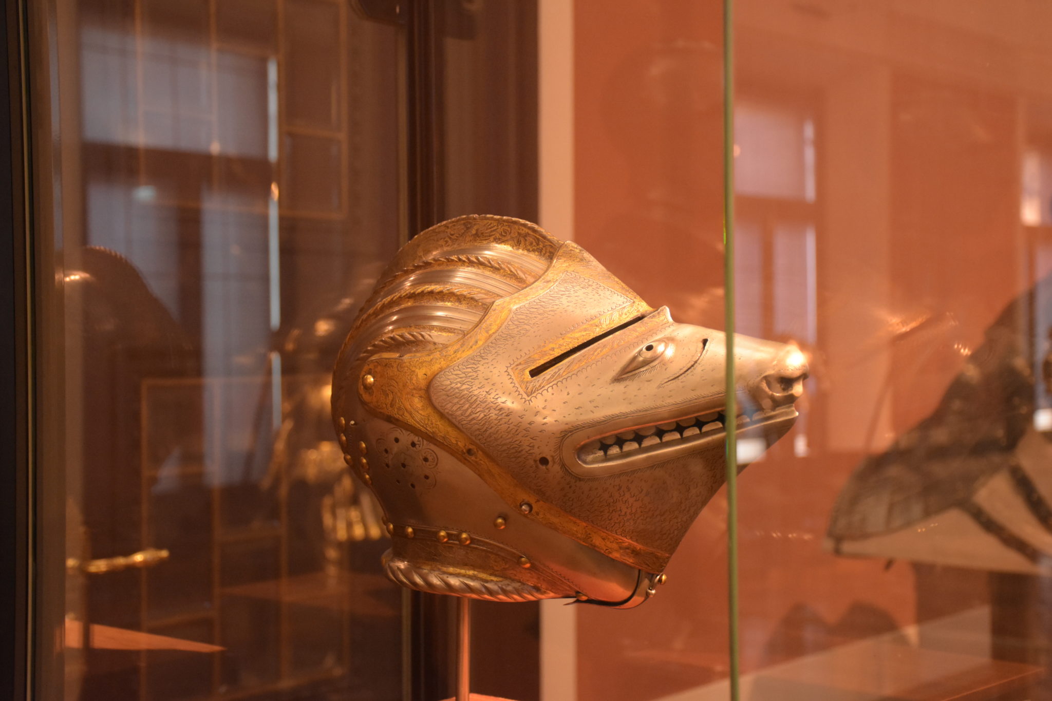 So wurde mancher Kopfschutz mit den Gesichtszügen von Tieren versehen, wie der „Fuchshelm“ von Kaiser Ferdinand I., zu dem es aber ein Wechselvisier mit menschlichem Antlitz gibt.