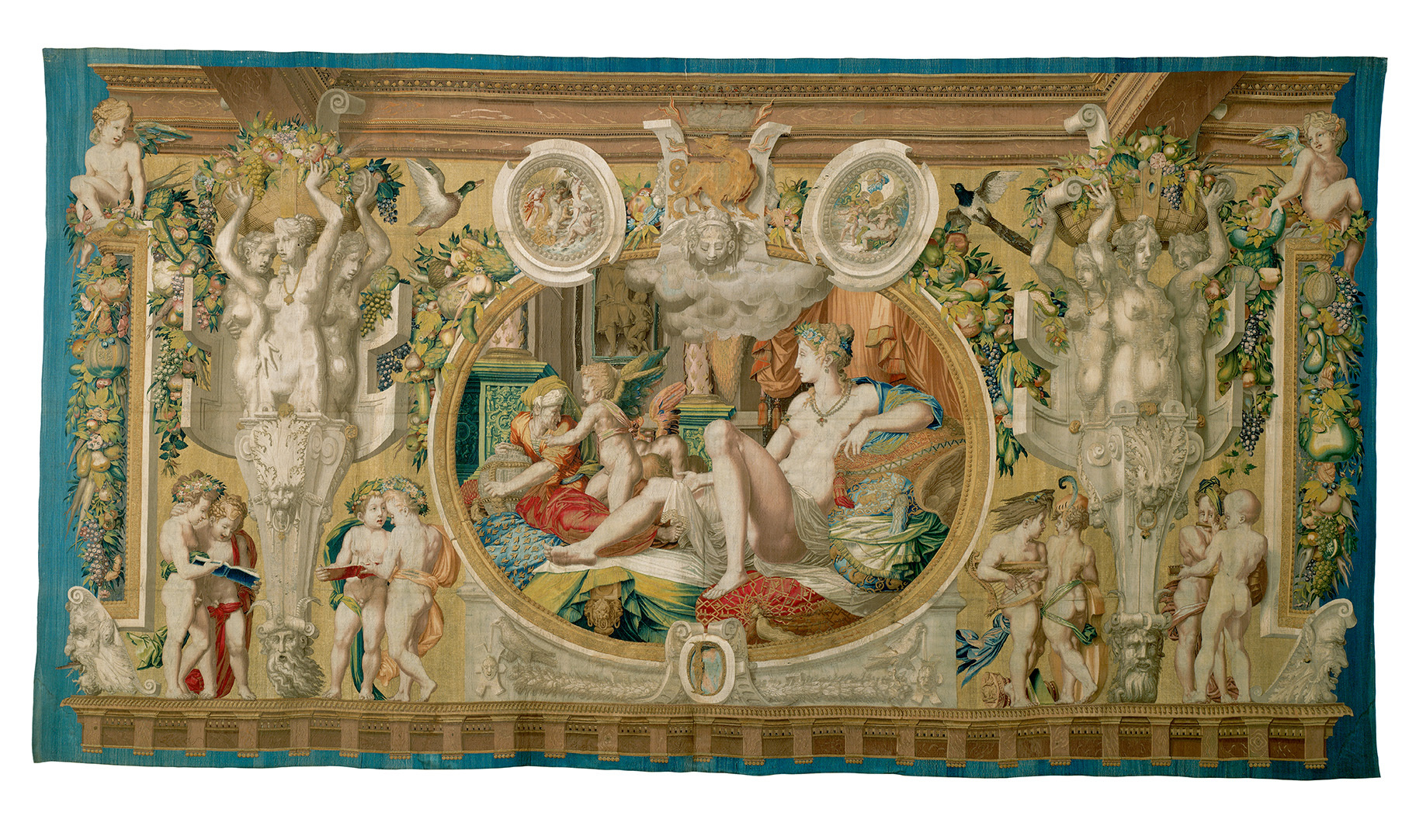 Tapisserien des frühen Mittelalters zeigen meist religiöse Themen, da sie für Kirchenräume vorgesehen waren, und meist in Klöstern hergestellt wurden. Jedoch dauerte es nicht lange, dass Monarchen und Fürsten die repräsentativen Möglichkeiten dieser Kunstwerke erkannten und zu den wertvollsten Objekten ihrer Kunstkammern avancierten. So konnte jeder Herrscher die Machtfülle und Glanztaten seiner Regentschaft wortlos präsentieren. Auch die griechische Mythologie und Kriegsszenen wurden zu beliebten Themen.