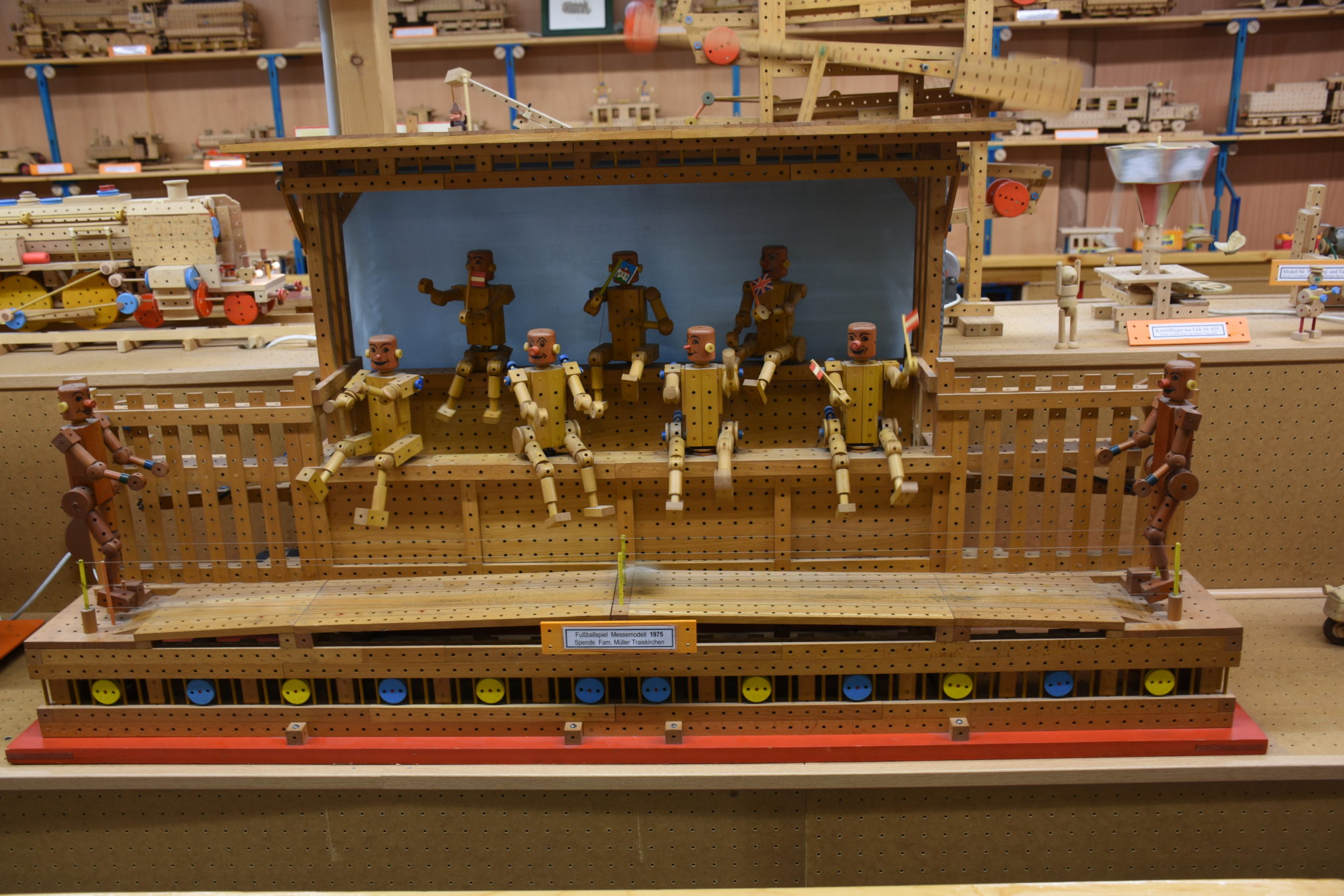 Hat man die Ladenzeile mit den Schauräumen hinter sich, ist man mit der Besichtigung noch nicht am Ende, denn es wird auch eine Schaustellung von altem Spielzeug geboten. Dieser Raum wird aber zum großen Teil von den Marken „Matador“ und „Anker Steinbau“ dominiert.