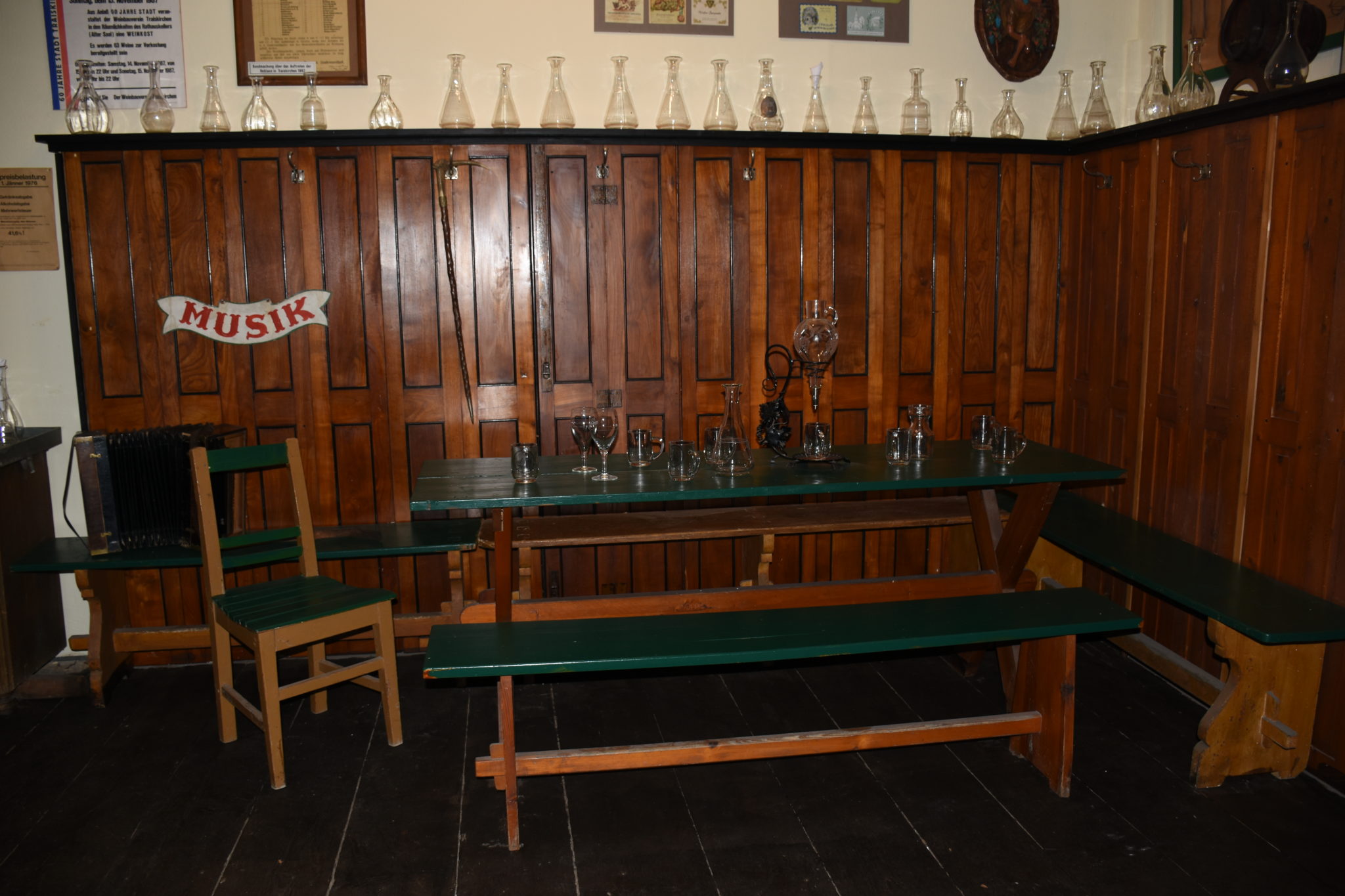 Erinnerungen an vergangene Zeiten weckt auch das originalgetreue „Wirtshaus“ mitsamt Weinkeller.