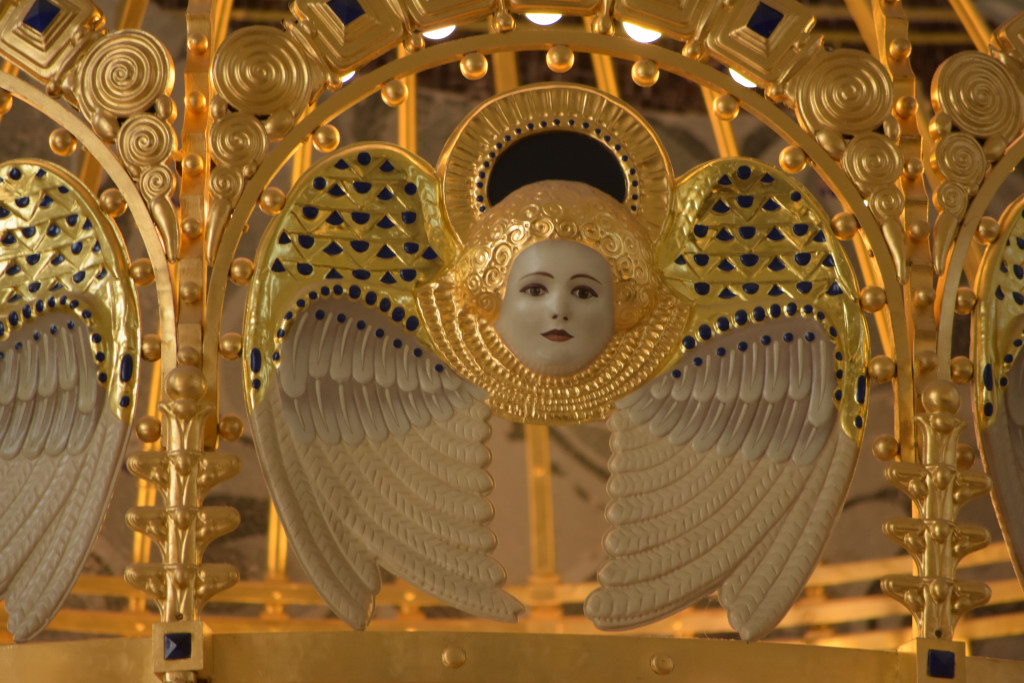 Schon der Weg hinauf zur Kirche ist interessant, da man immer wieder die goldene Kuppel zwischen Gebäuden und Bäumen zu sehen bekommt. Steht man erst vor dem Gotteshaus beeindrucken, neben der glänzenden Kuppel, die würdigen, sitzenden Figuren des Hl. Severin und des Hl. Leopold und dann, vor allem, diese vier märchenhaften, betenden Engel über dem Portal des Gotteshauses.