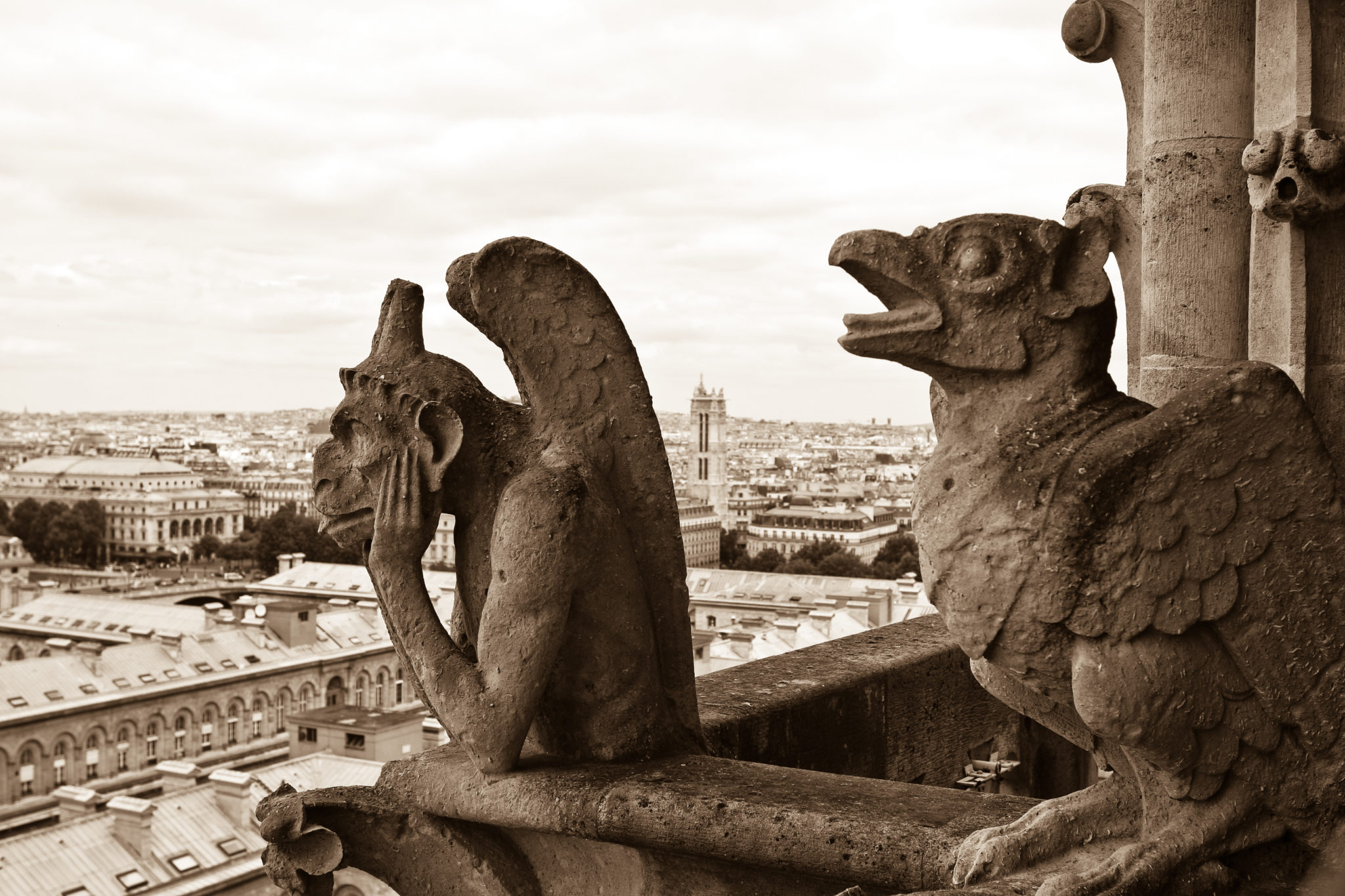 Auf jeden Fall erwähnenswert sind die grotesken Fabelwesen die als Figuren und Wasserspeier an der Fassade sitzend über Paris blicken. Durch den witterungsbedingt schlechten Zustand wurden sie aber im 19. Jahrhundert erneuert.