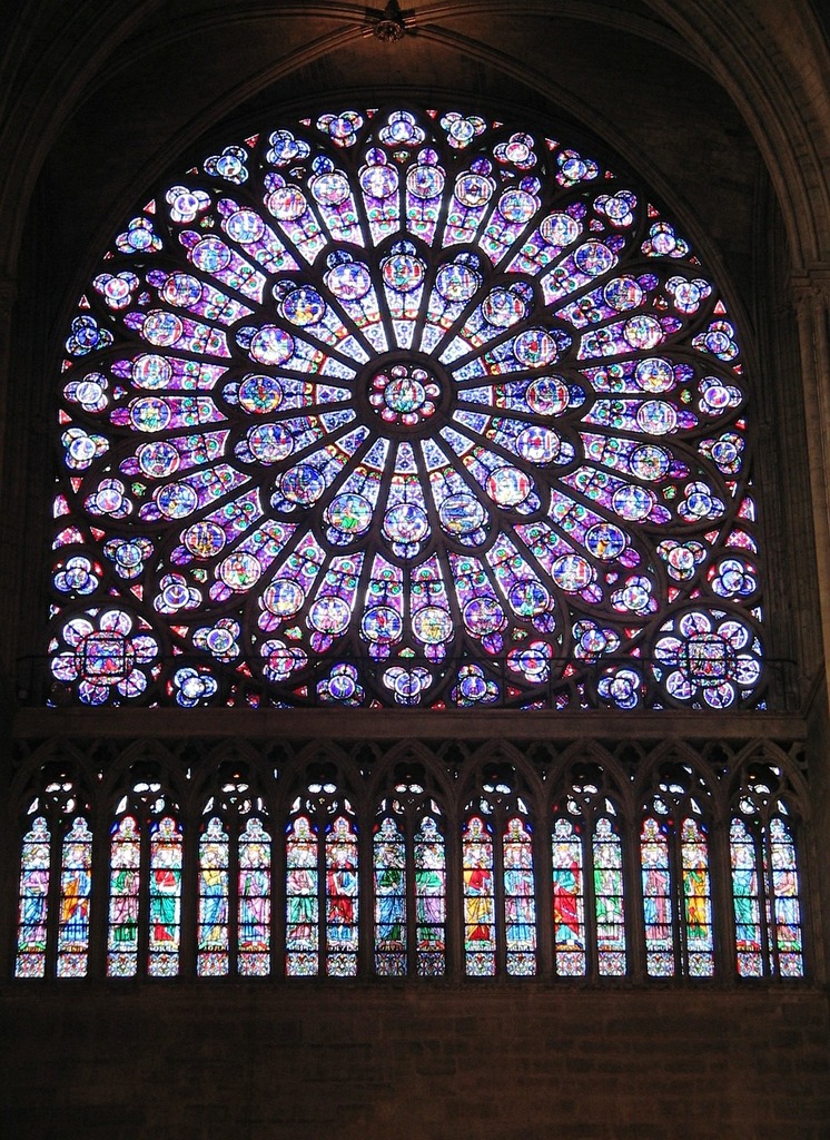 Ein Wunderwerk der Glaskunst, die im Durchmesser 12 Meter große Fensterrose, wurde in den Jahren 1220-1225 eingesetzt, und nimmt die gesamte Fassadenbreite des Querhauses ein und ist somit eine der größten ihrer Zeit.