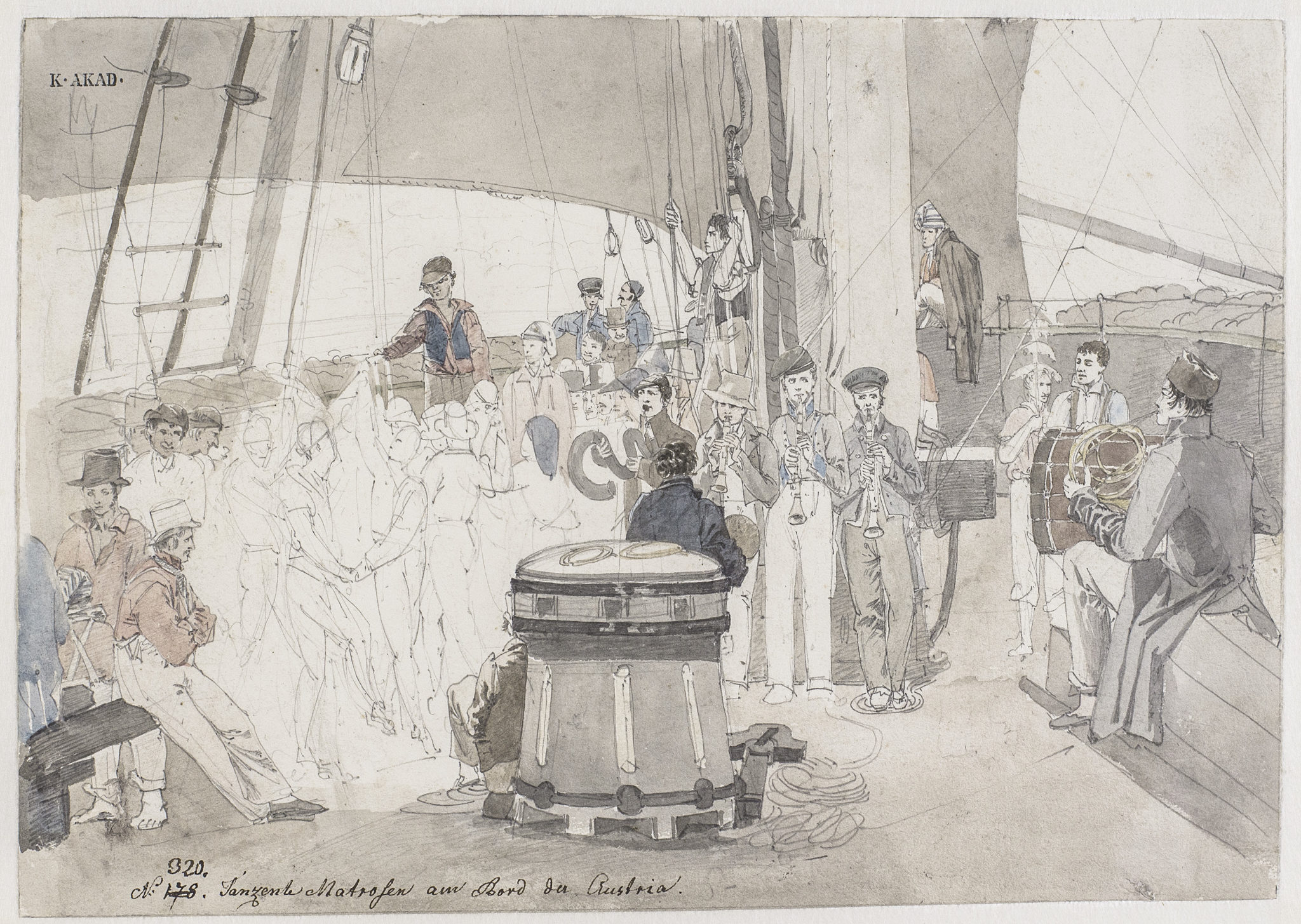 - Tanzende Matrosen an Bord der Austria, Foto: © Kupferstichkabinett der Akademie der bildenden Künste, Wien