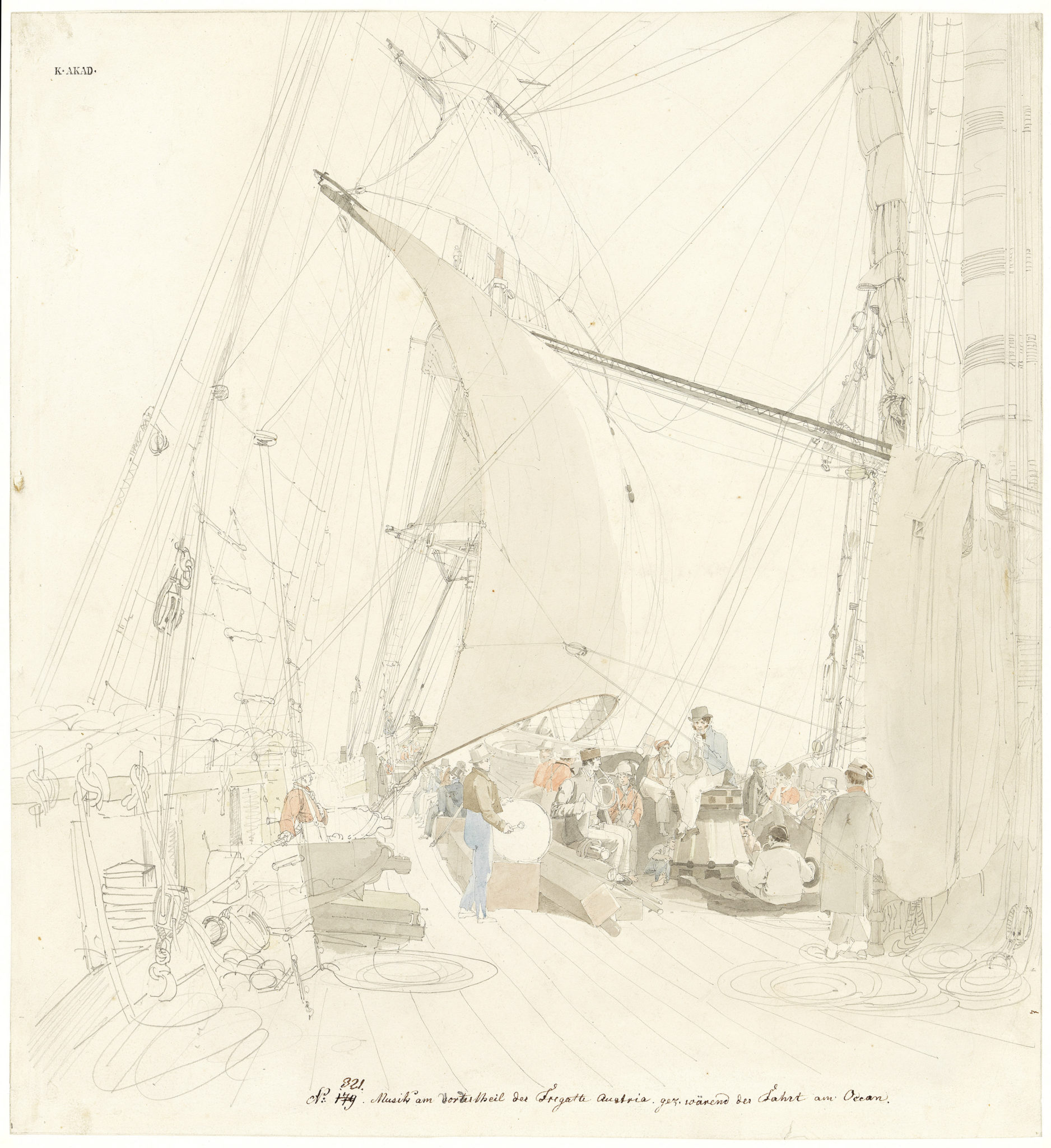 - Die Schiffsbande während der Fahrt am Ocean, Fregatte Austria, Foto: © Kupferstichkabinett der Akademie der bildenden Künste, Wien